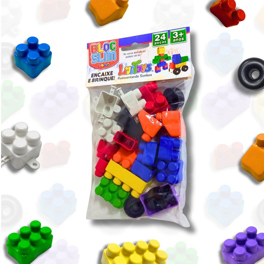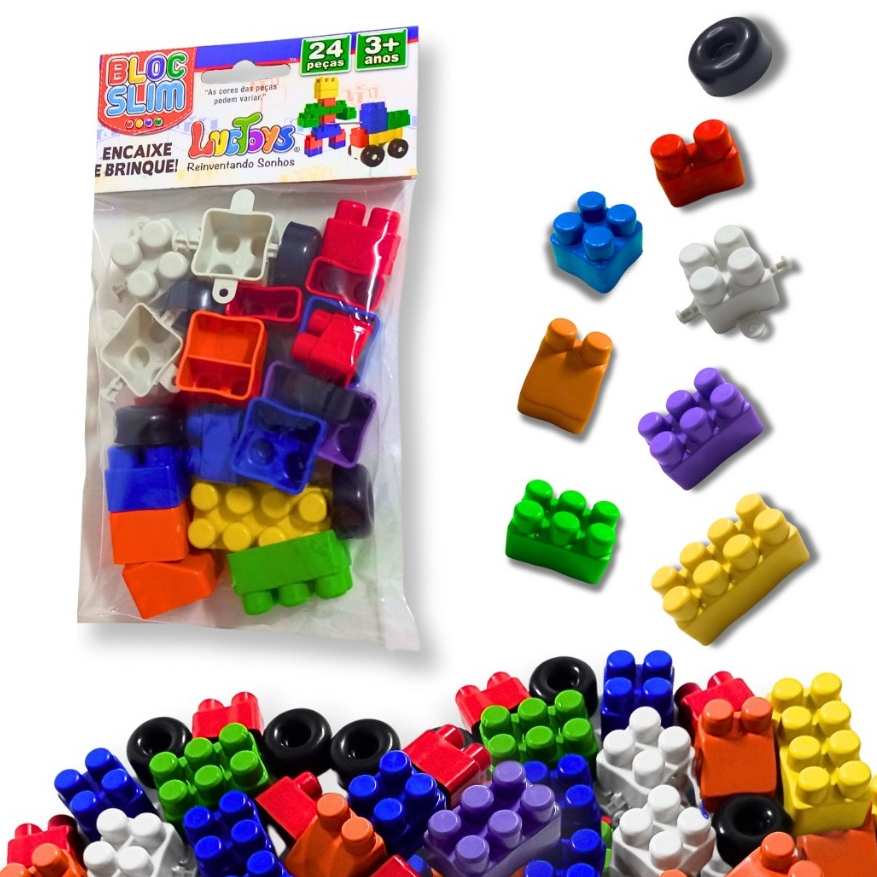 Kit 20 Pct de Bloco De Montar Encaixar com Rodinha Brinquedo Educativo 24 Peças Oferta Lembracinha