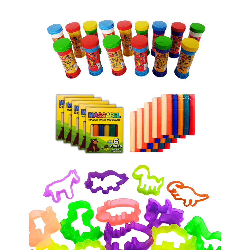 5 Cx Massinha de Modelar + 5 Bolha de Sabao + 5 Cortador P/Kit Festa Lembrancinha Aniversario Prenda