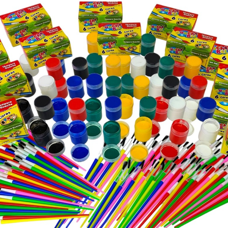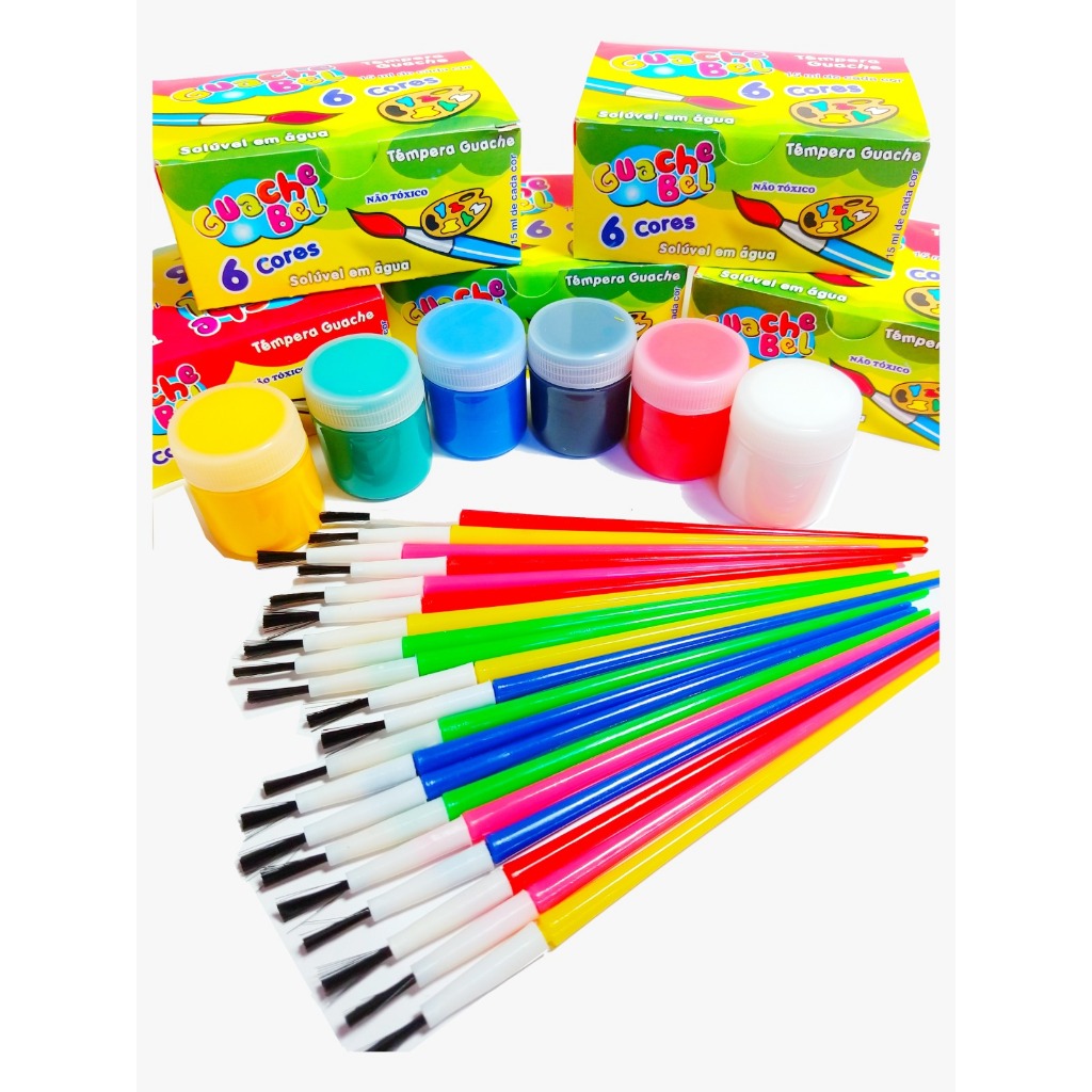 30 Cx Tinta Guache + 30 Pincel Artistico Artesanato Lembrancinha Para Aniversario Prenda Criança