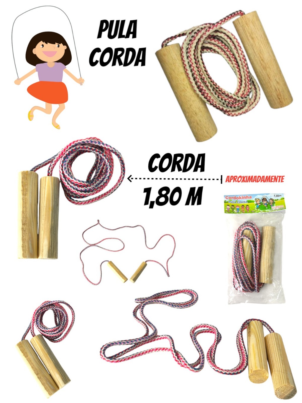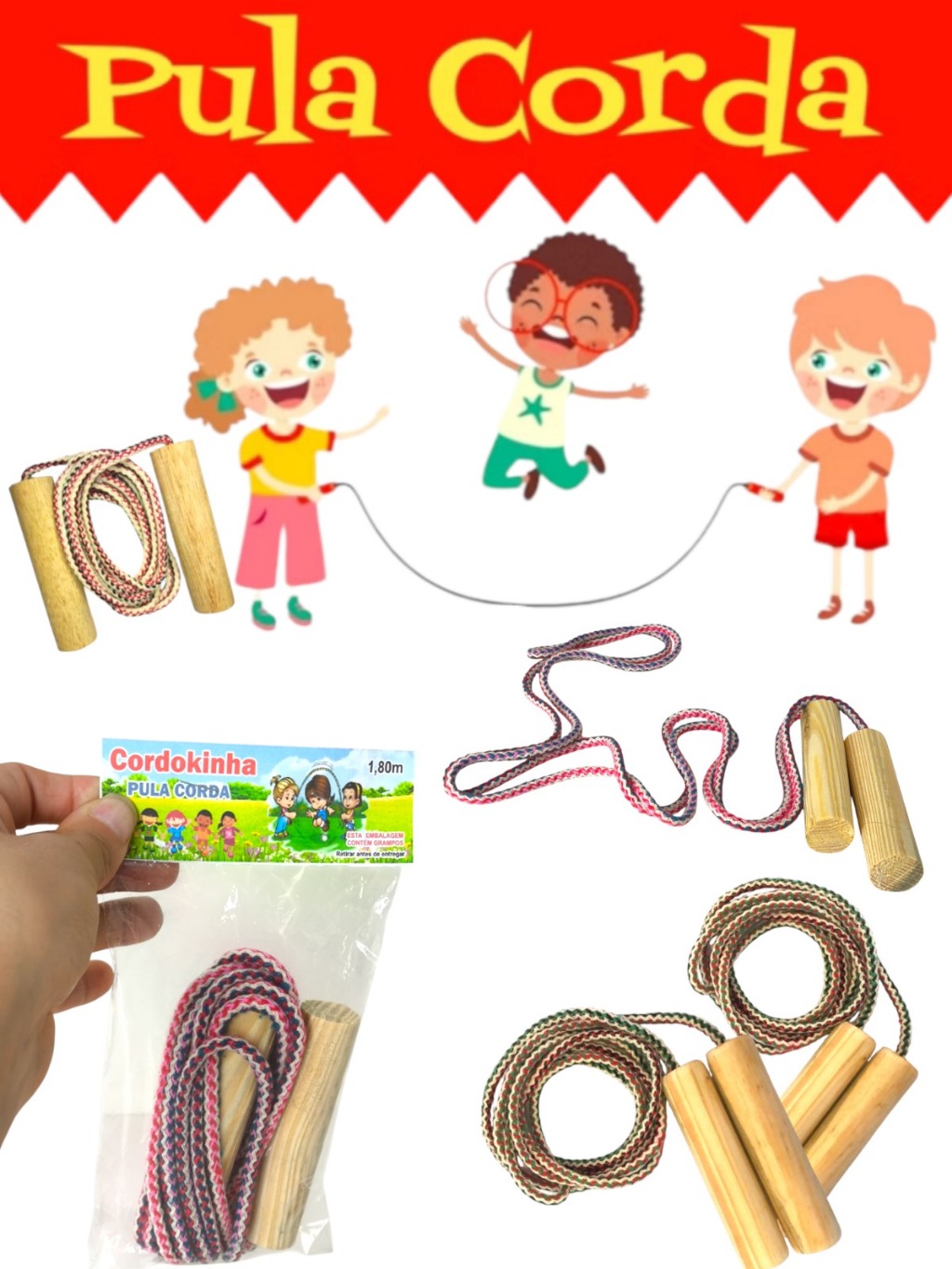 Kit 20 Pula Corda Brinquedo Resistente 1,80 M Infantil Festa Lembrancinha Aniversario Prenda Criança