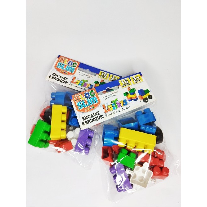 10 Pct Bloco De Montar 16 Peças com Rodinha Brinquedo Educativo Infantil Didático novo