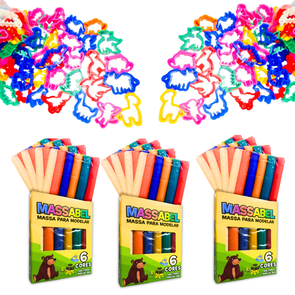 50 Cxs Massinha 6 Cores+ 100 Forminhas Cortadores de Modelar Infantil Kit Lembrancinha Prenda novo