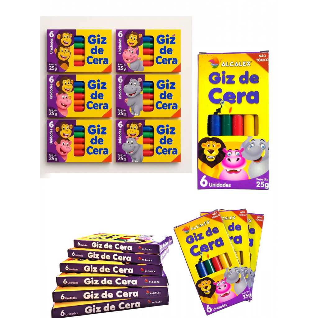 Caixas Giz De Cera 6 Cores Pinta Colorido Para Kit Festa Lembrancinha Aniversario Prenda Sacolinha