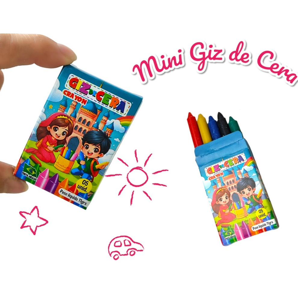 65 Cxs Mini Giz De Cera 5 Cores 5 Cms Atacado P/ Kit Festa Infantil Revenda Lembrancinha Aniversario