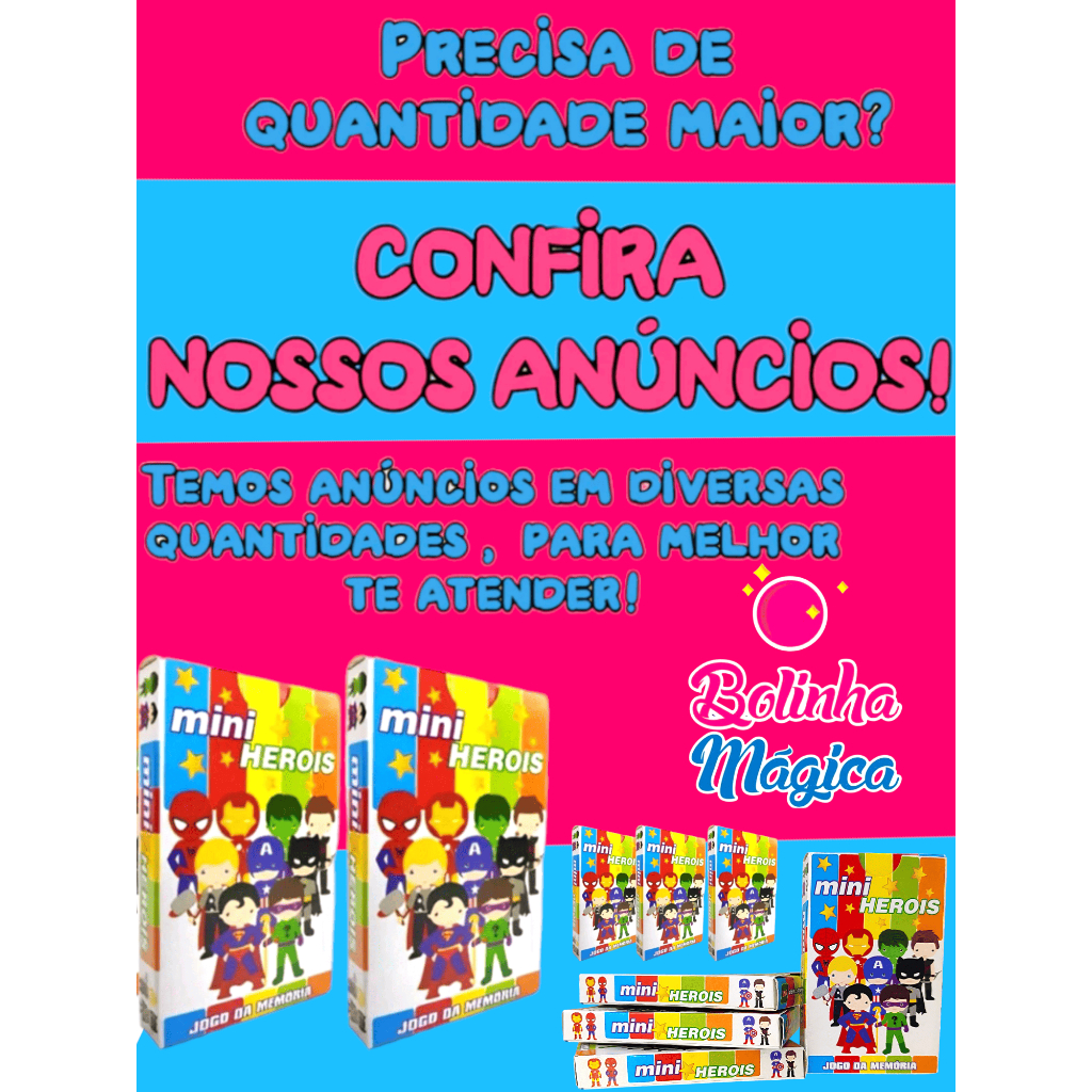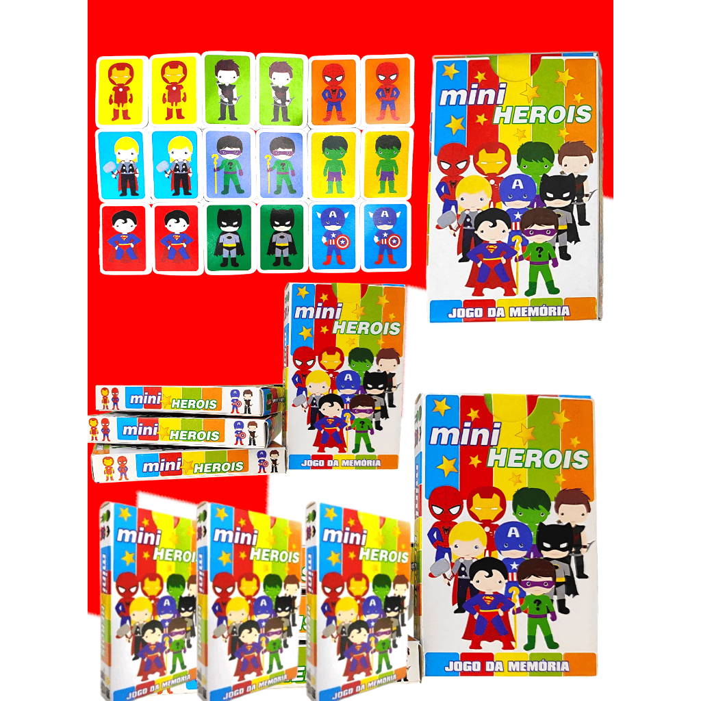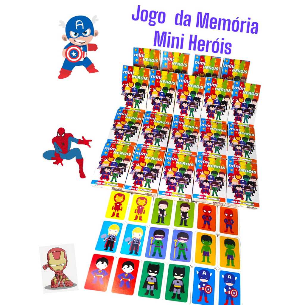 Kit 10 Jogo Da Memoria Mini Heróis Infantil P/ Kit Festa Lembrancinha Aniversario Prenda Quermesse