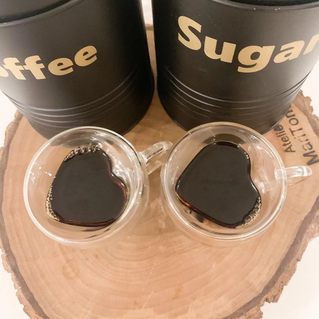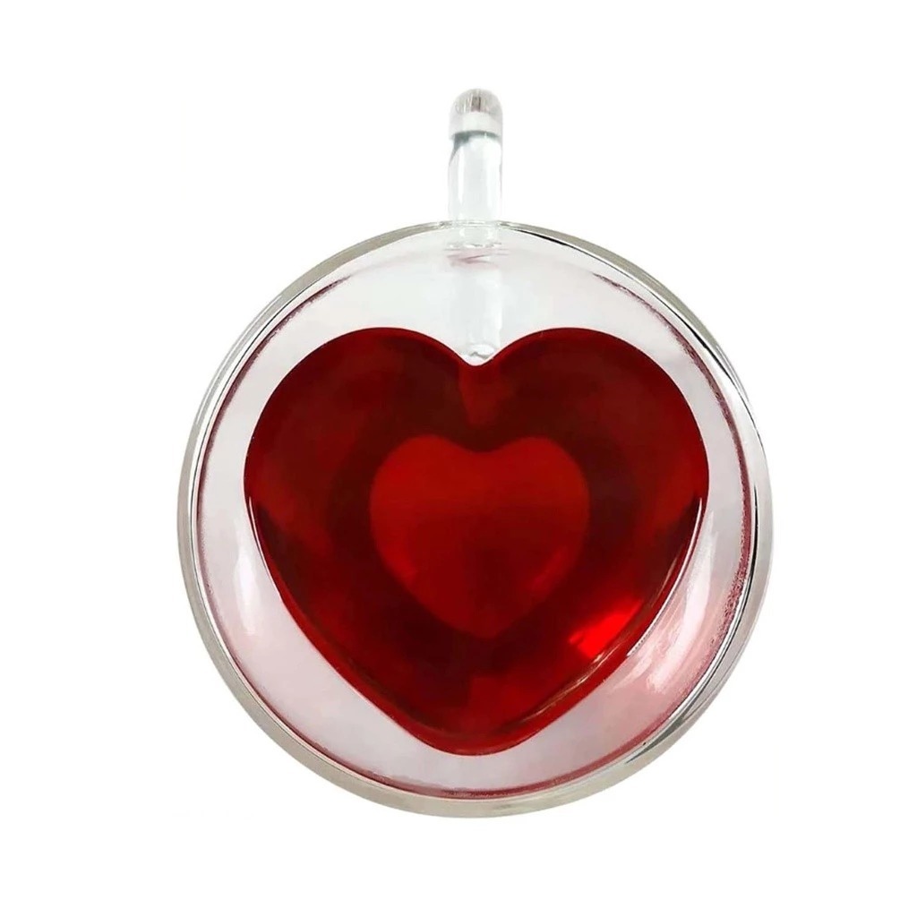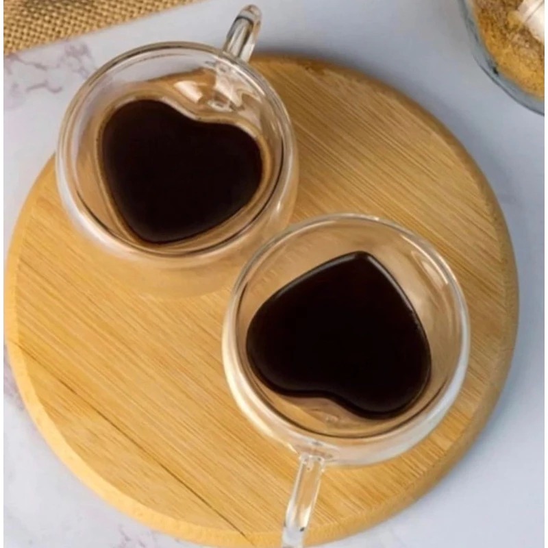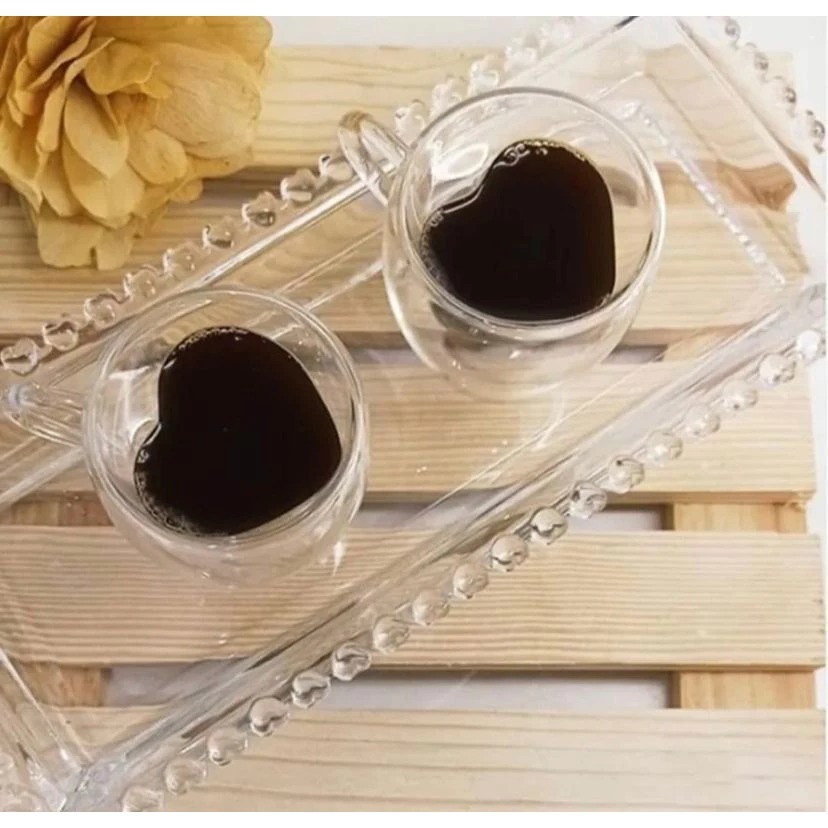 Xicaras Coração Parede Dupla 80ML Caneca P/ Café Chá Drink Vidro Resistente Presente Kit Lembrança