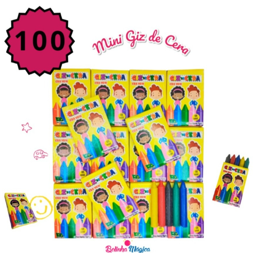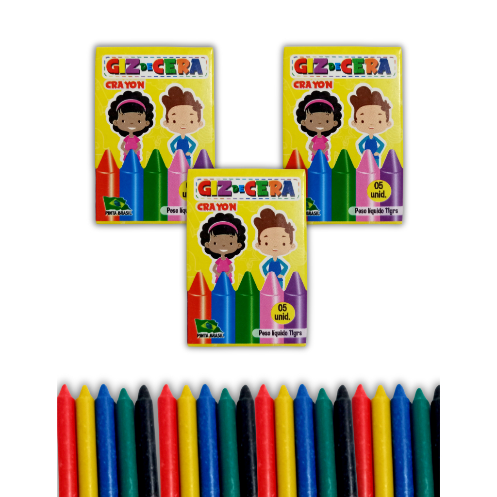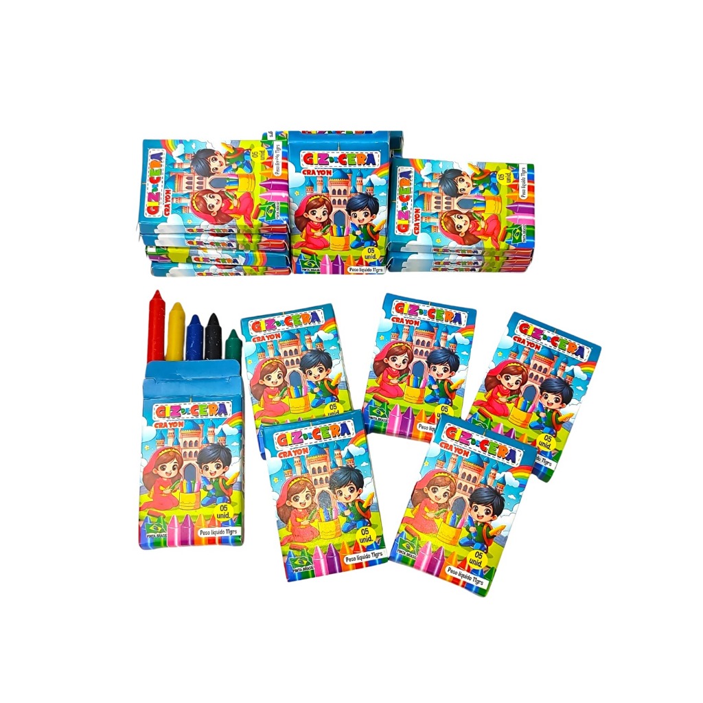 Kit Caixas Mini Giz De Cera Colorido 5 Cores Atacado Festa Aniversario Infantil Prenda Lembracinha