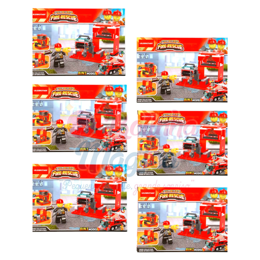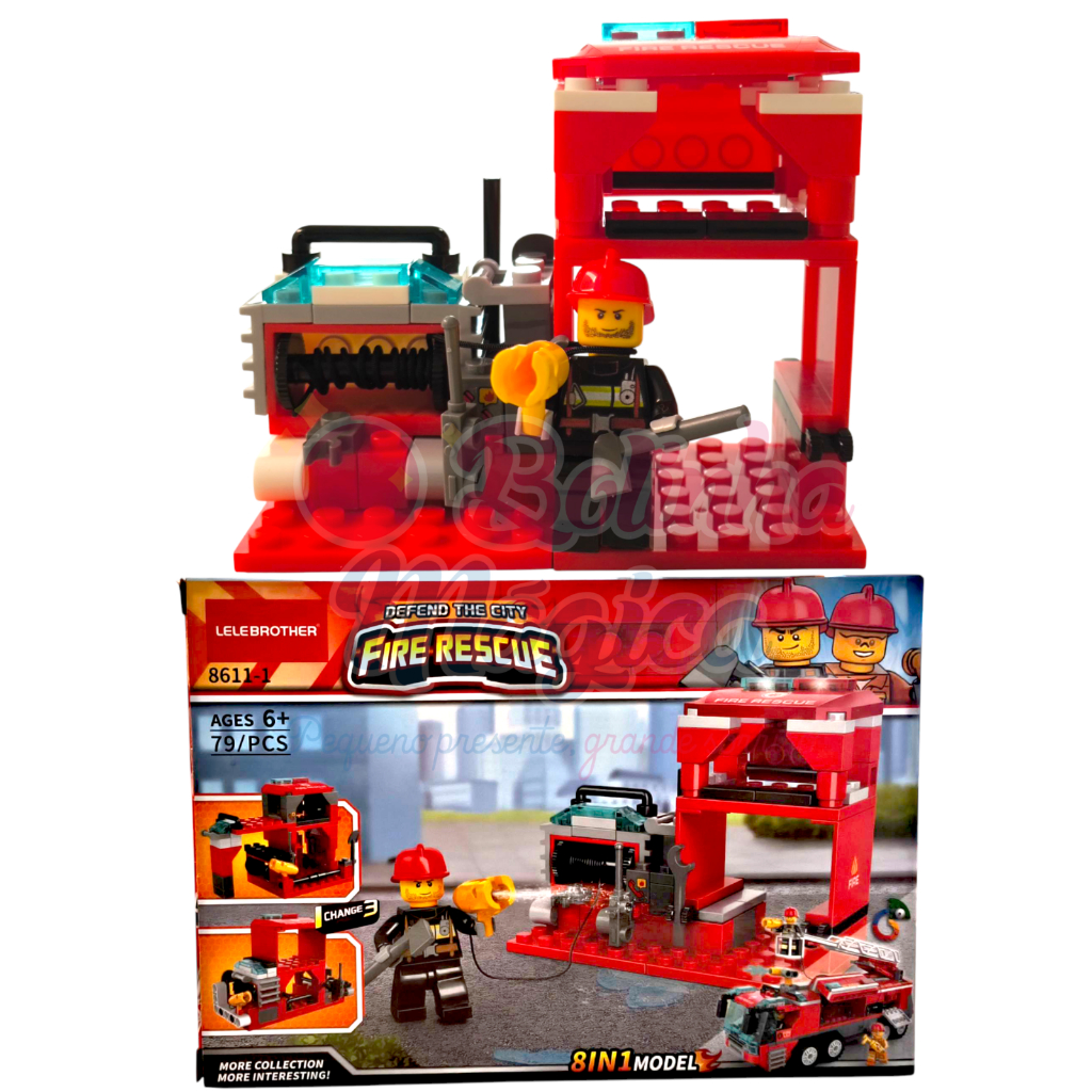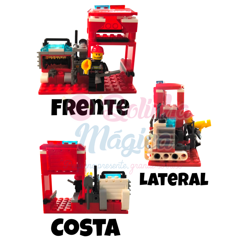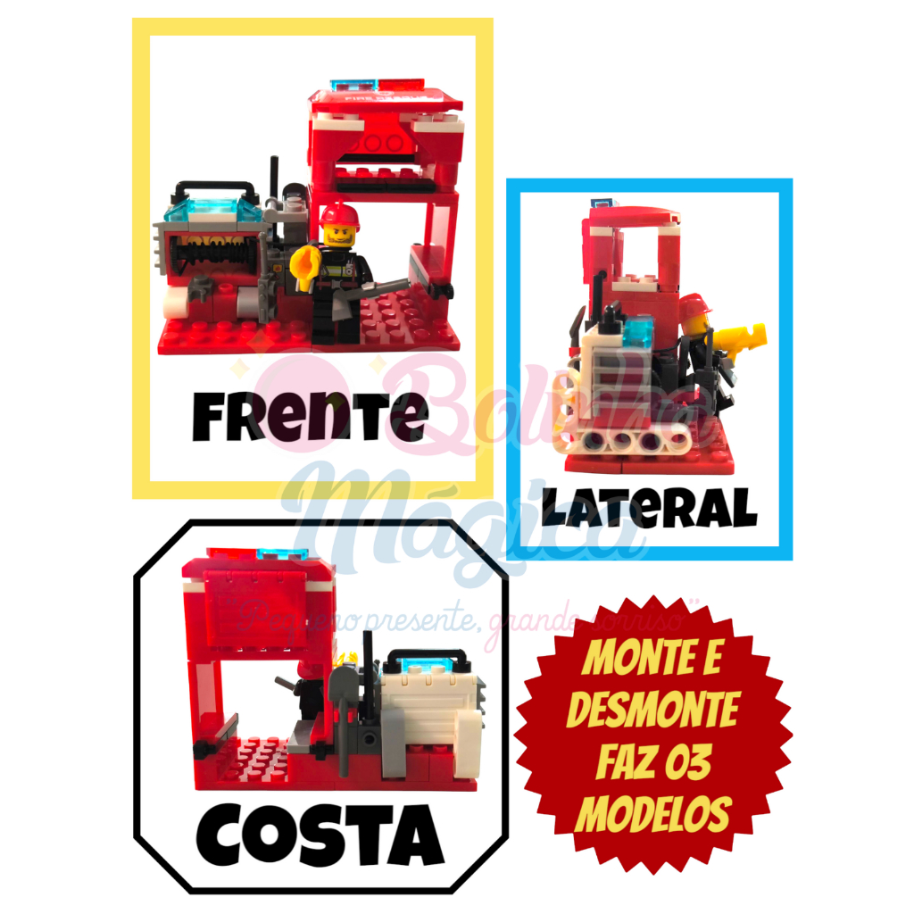 Kit Bloco De Montar Estação de Bombeiro 79 Peças 3 em 1 Brinquedo Educativo Lembrancinha Infantil