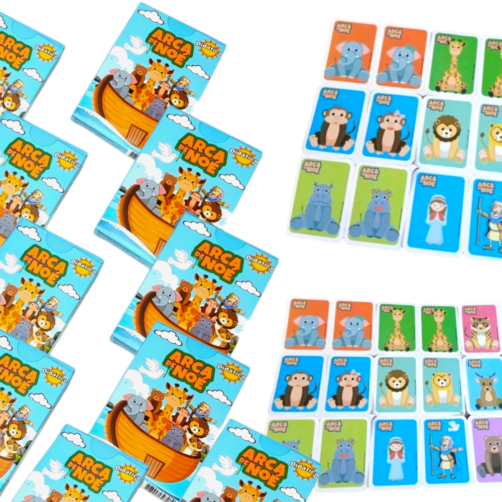 50 Jogos da Memória Arca de Noé, Cartas Ilustradas de Animais, Brinquedo Dia das Criança Prenda