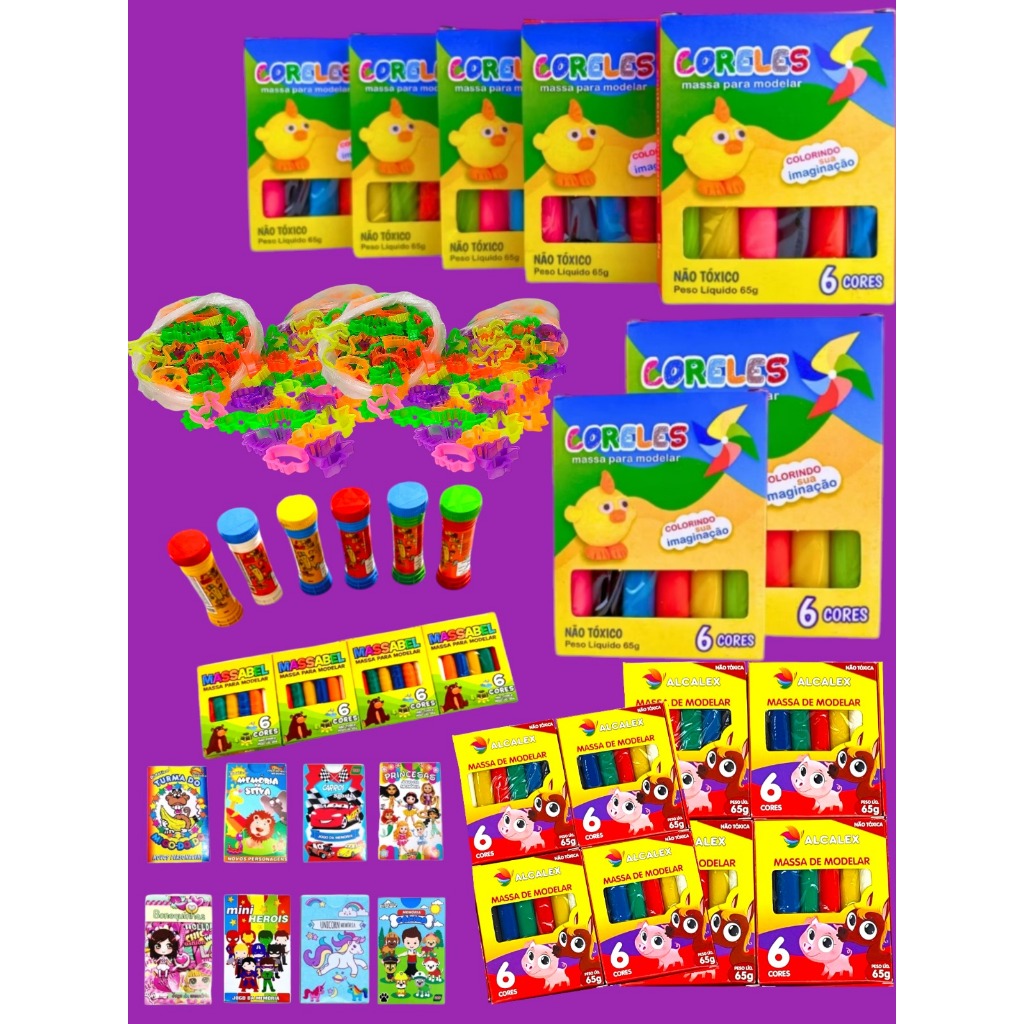 Kit Cxs 10 Massinha De Modelar + 10 Sabão + 10 Jogo Memoria Sortido + 20 Cortador Festa Lembrancinha