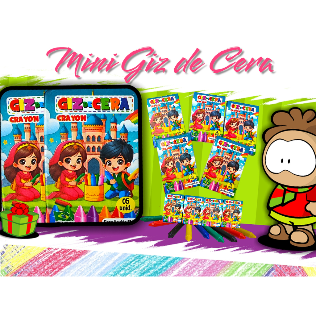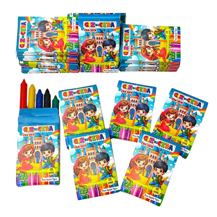 5 Cxs Mini Giz De Cera 5 Cores 5 Cms Atacado p/ Kit Festa Infantil Revenda Aniversario Prenda