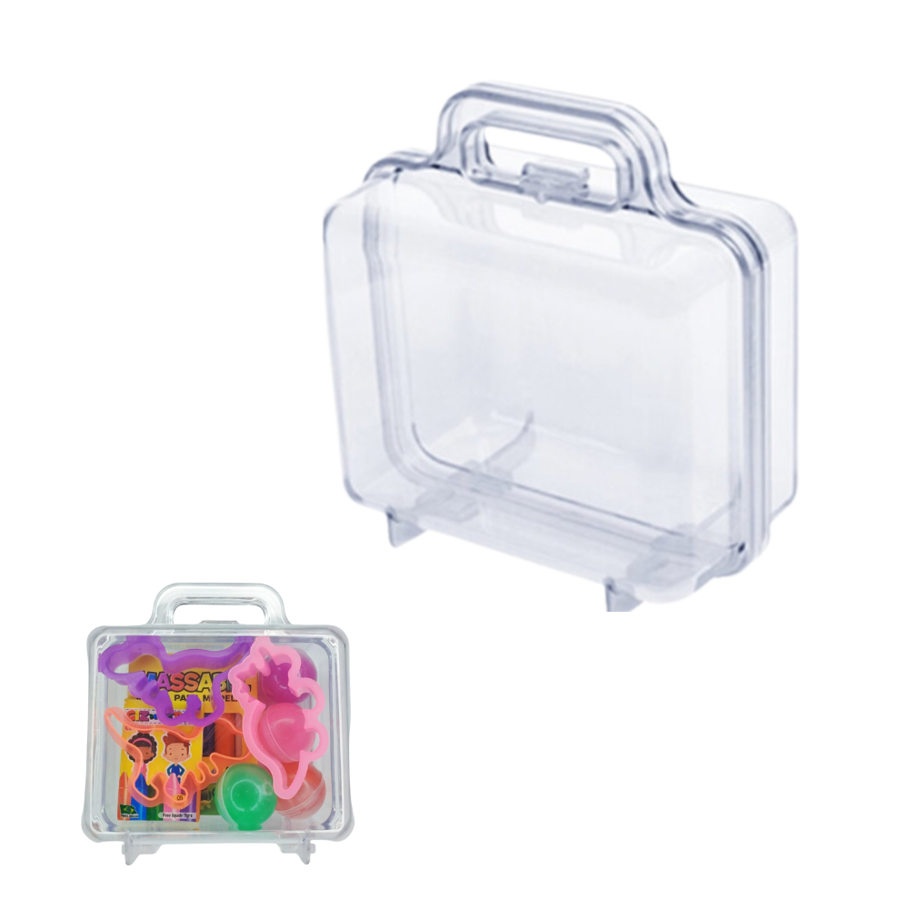 Kit 15 ( Maleta Acrilica Cristal + Bolha De Sabao + Cortadores Forminha + Massinha De Modelar )