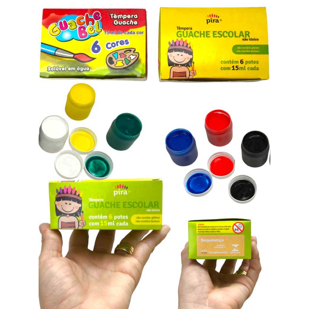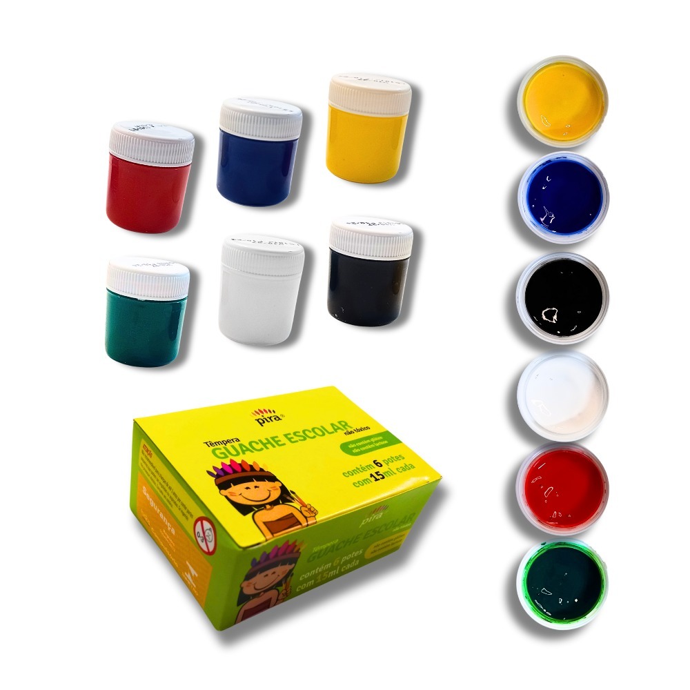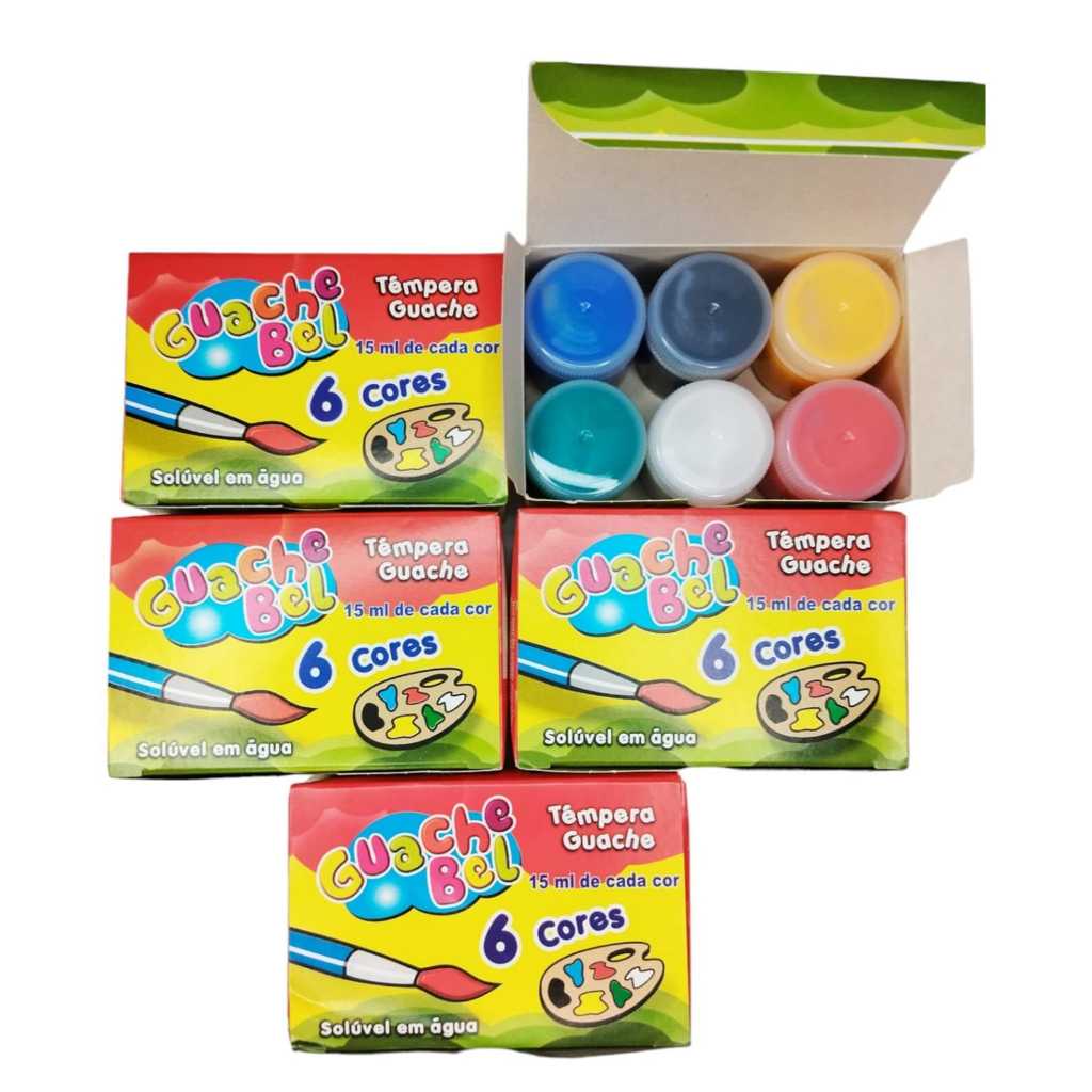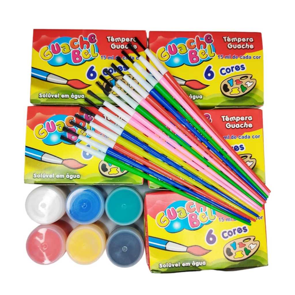Kit 30 Unidades Tinta Guache15ml + 15 Unid. Pinceis Pintura Aquarela Escolar Lembrancinha Infantil