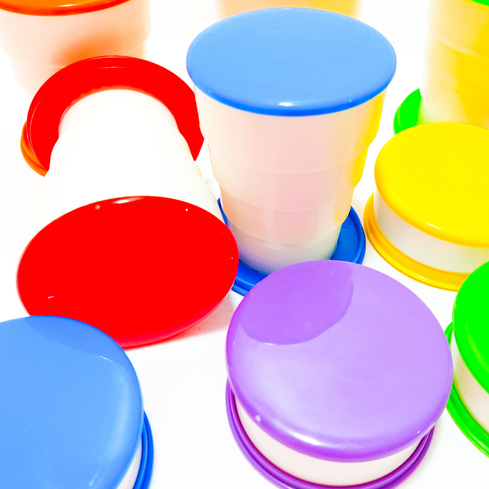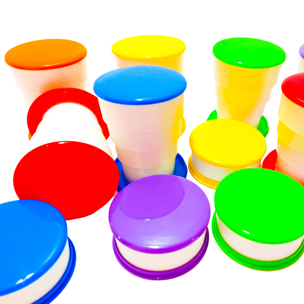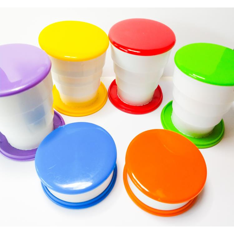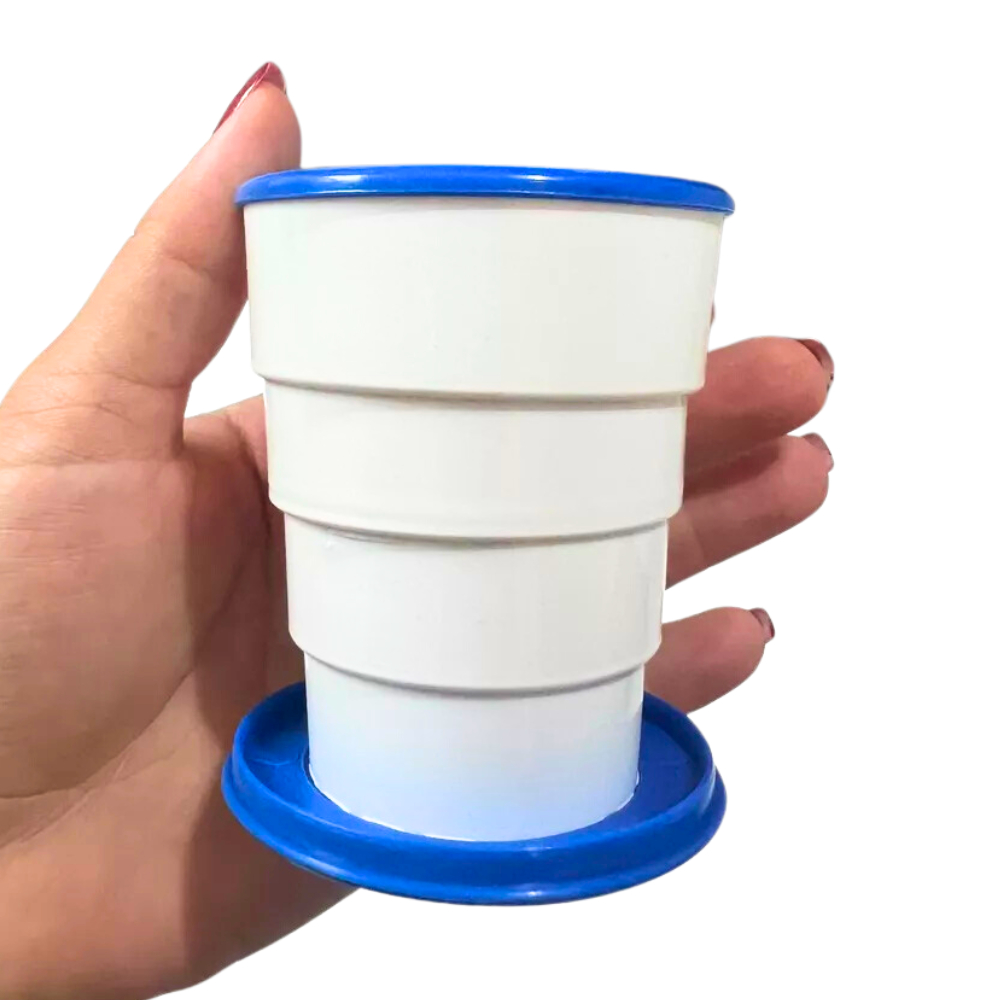 100 Unid Copo Retrátil Dobrável Sanfonado com Tampa P/ Lembrancinha Kit Festa Aniversario Prenda