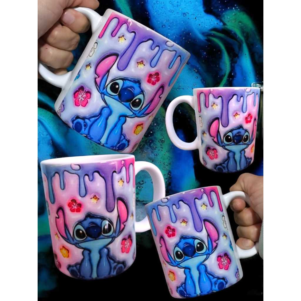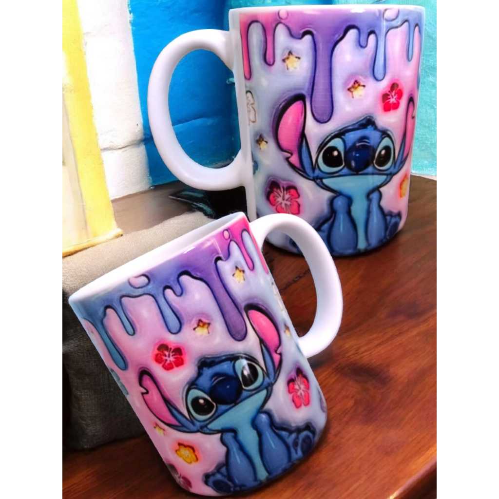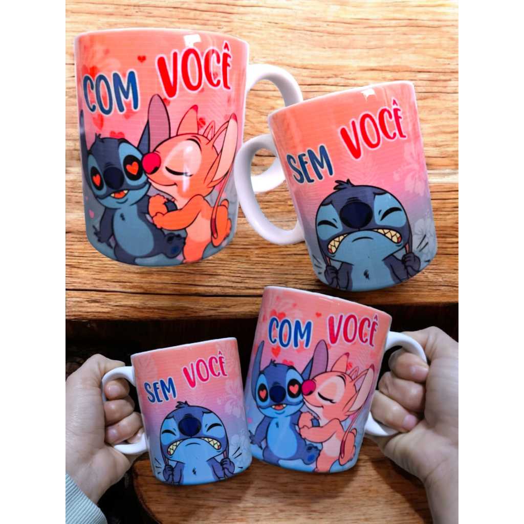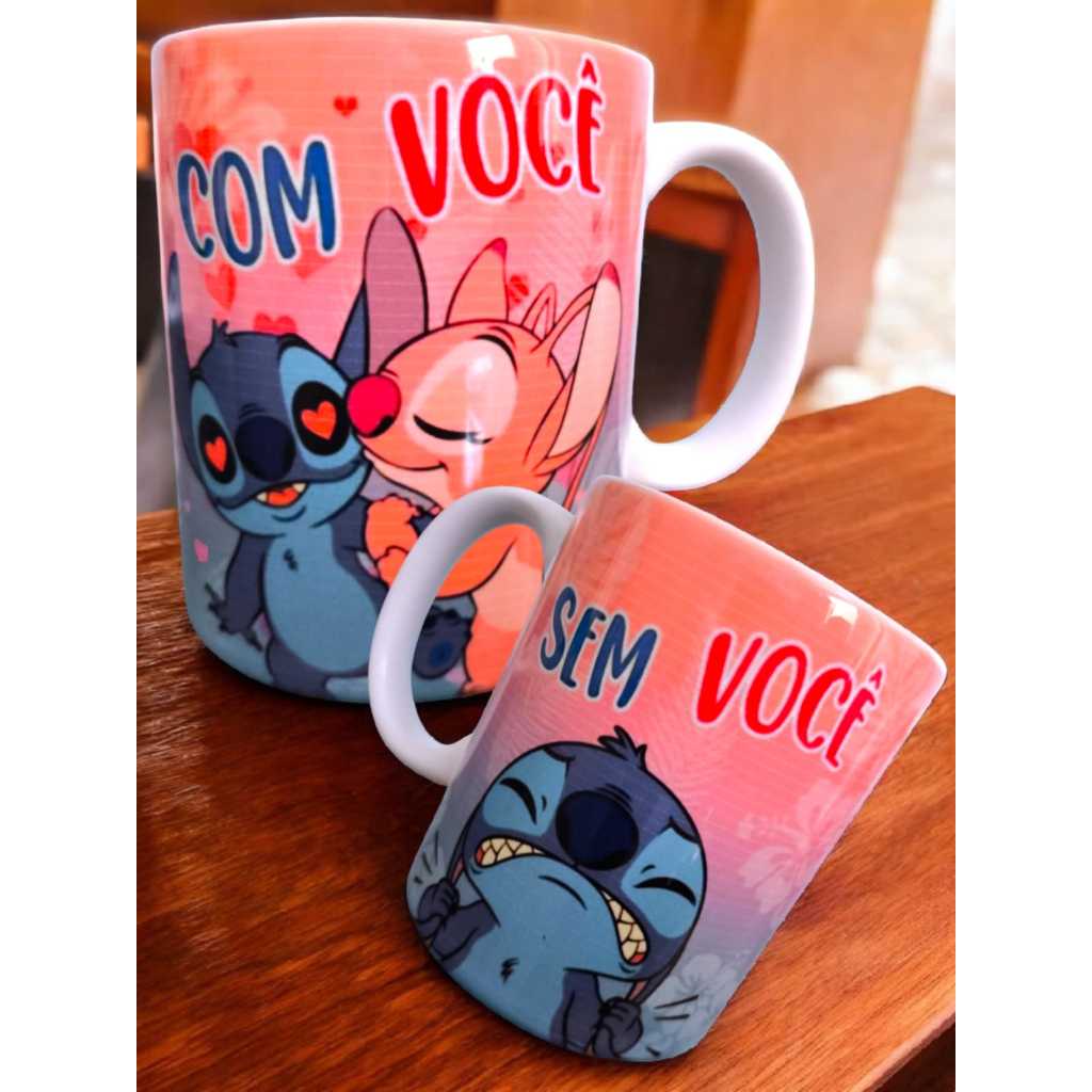 Caneca de Porcelana Lilo e Stitch Xicara Personalizada Flork e Meme Dia dos Namorados Presente Casal