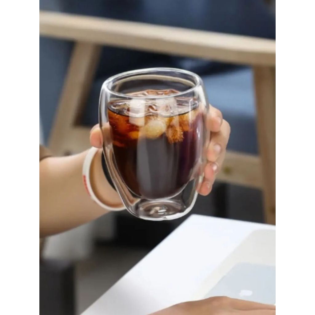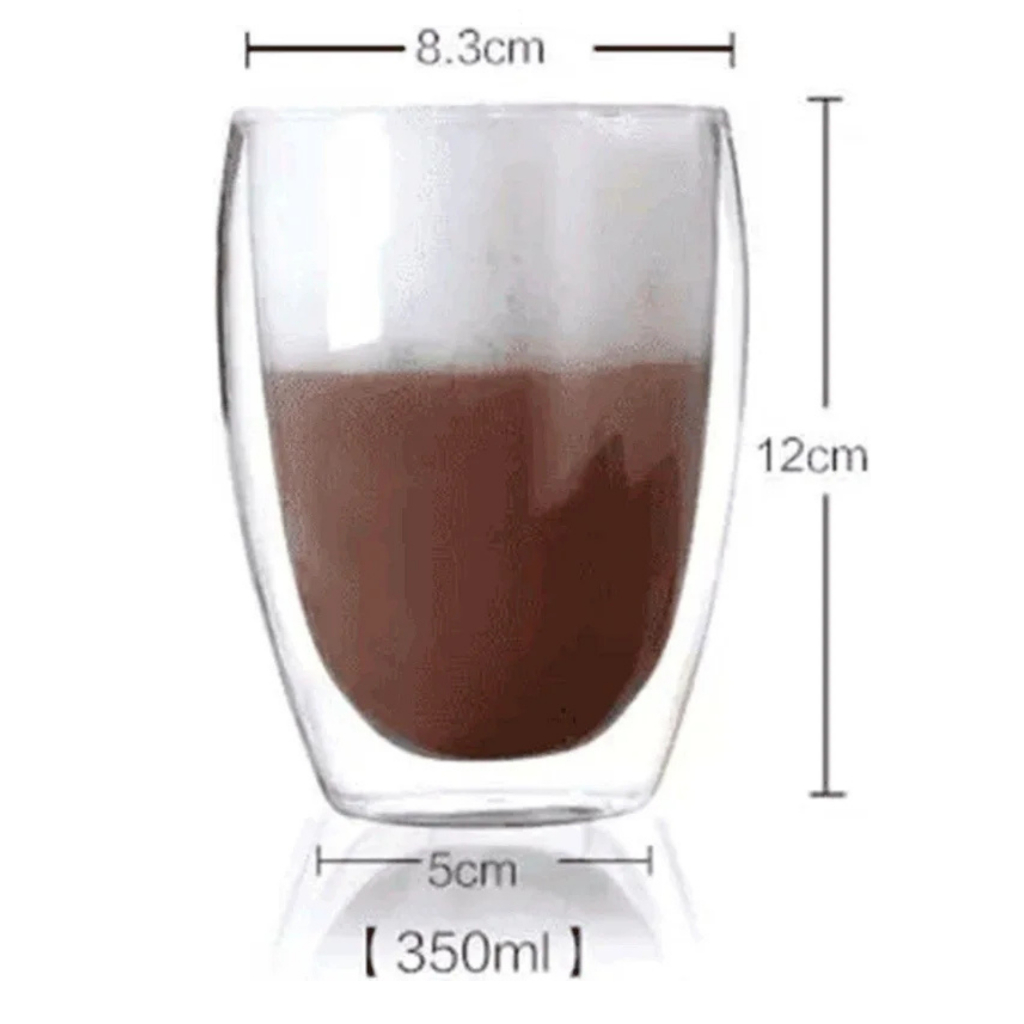Kit Copo de Vidro Duplo Parede Dupla Reforçado Resistente 350ml Café Expresso Chá Capuccino Presente