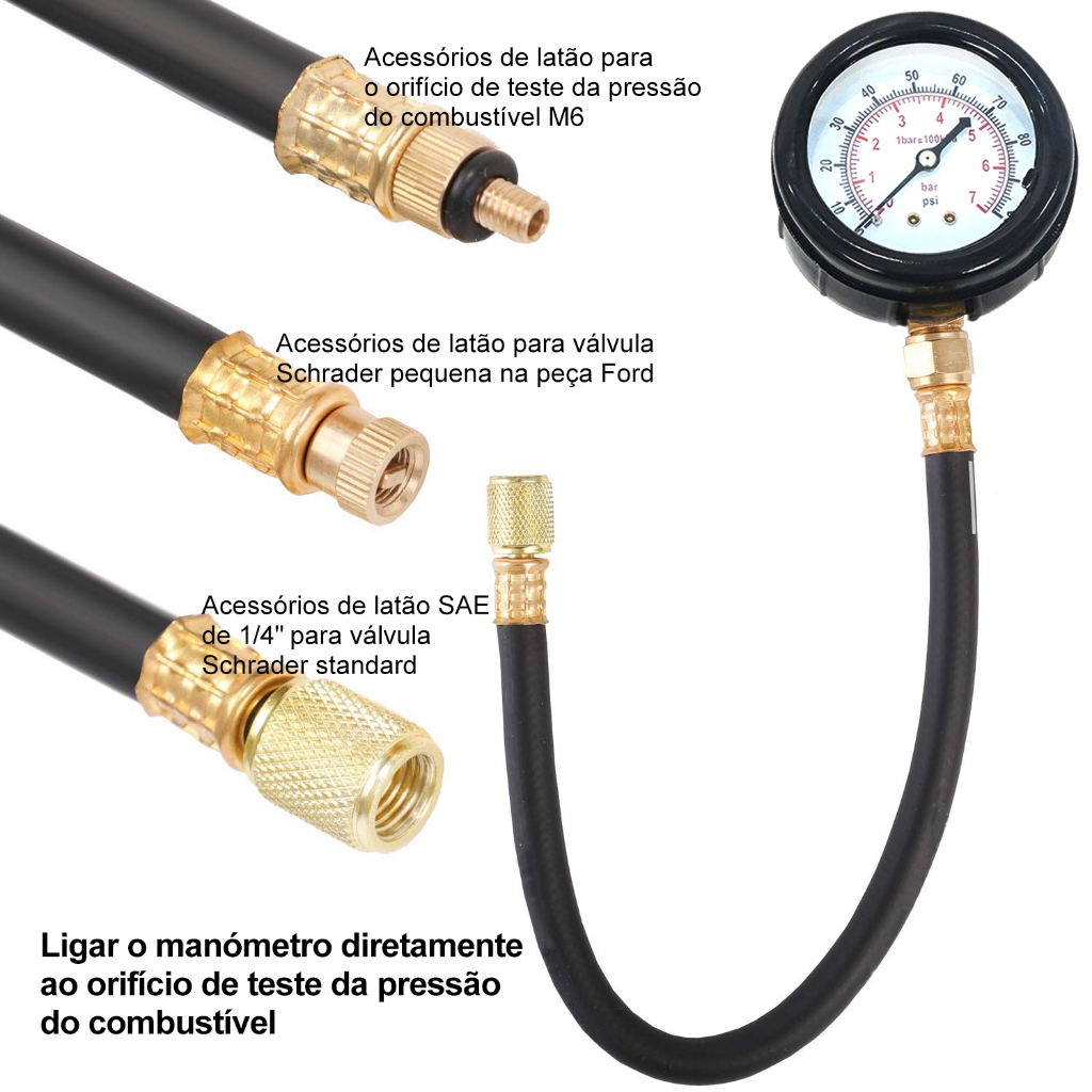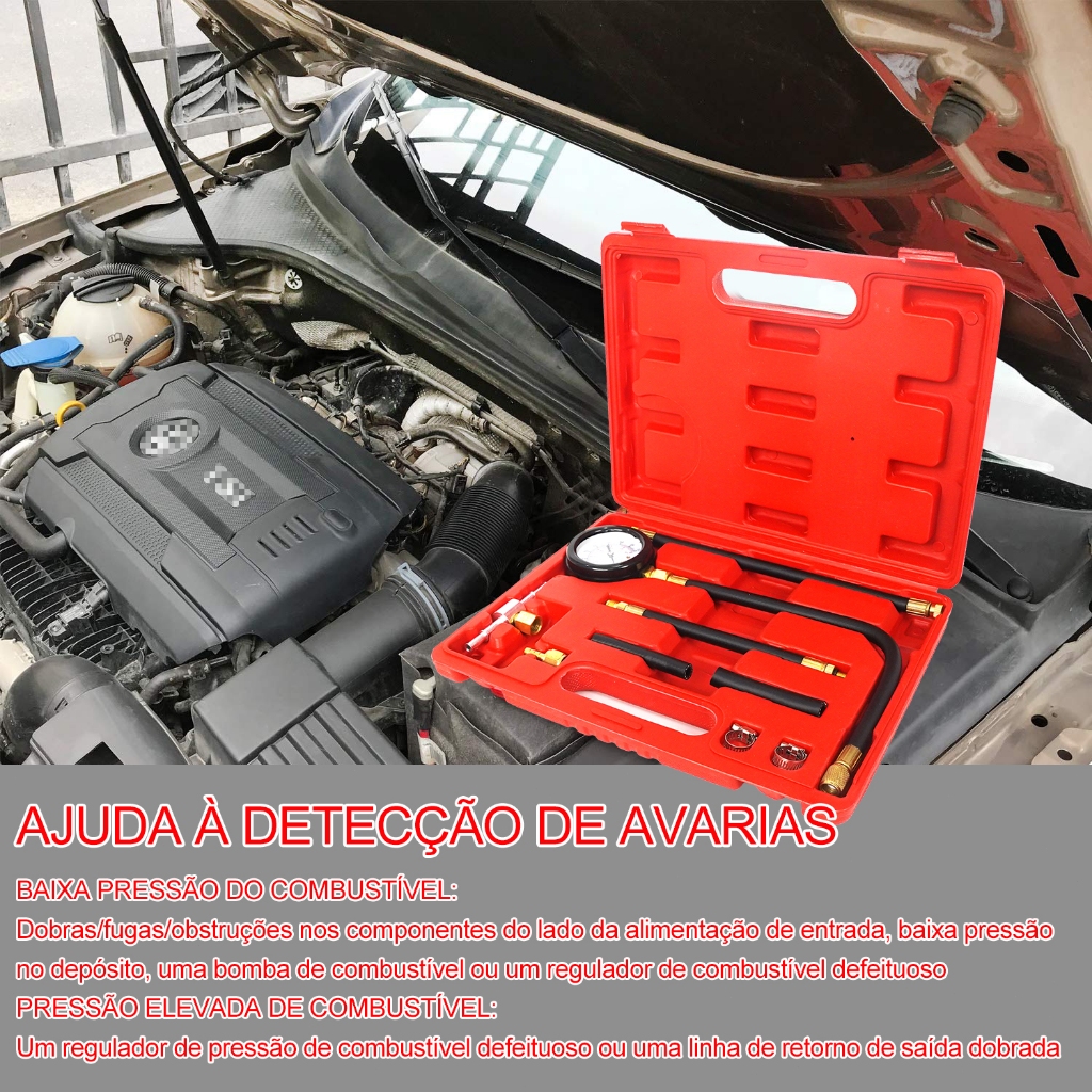 Kit Teste Pressão Combustível Manômetro Bomba Injeção Carro Moto Diagnóstico Automotivo Ferramenta 11 Peças JOYFOX