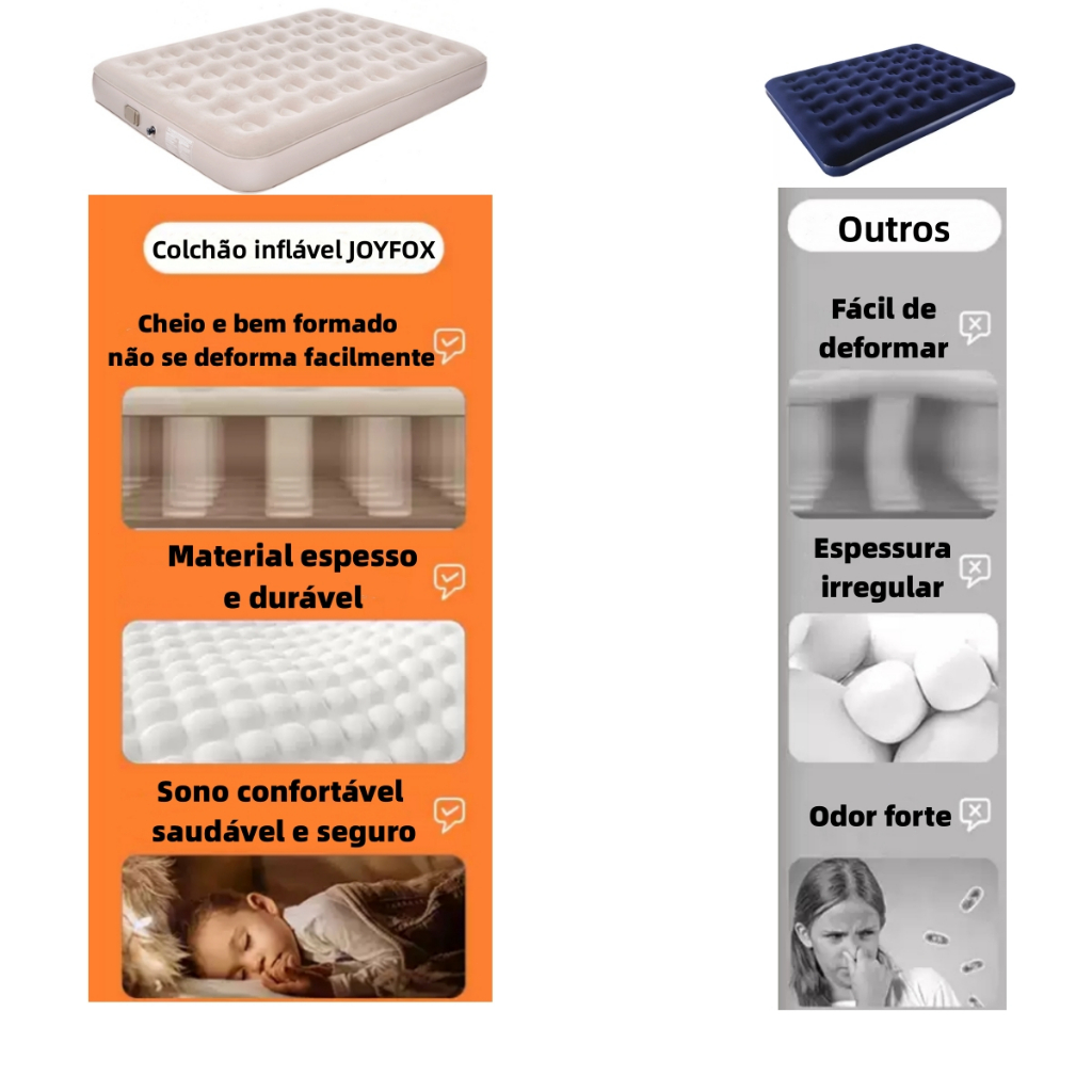 JOYFOX Colchão Inflável Casal Queen Vem Com Bomba Inflável De Bateria De Lítio Embutida E Removível