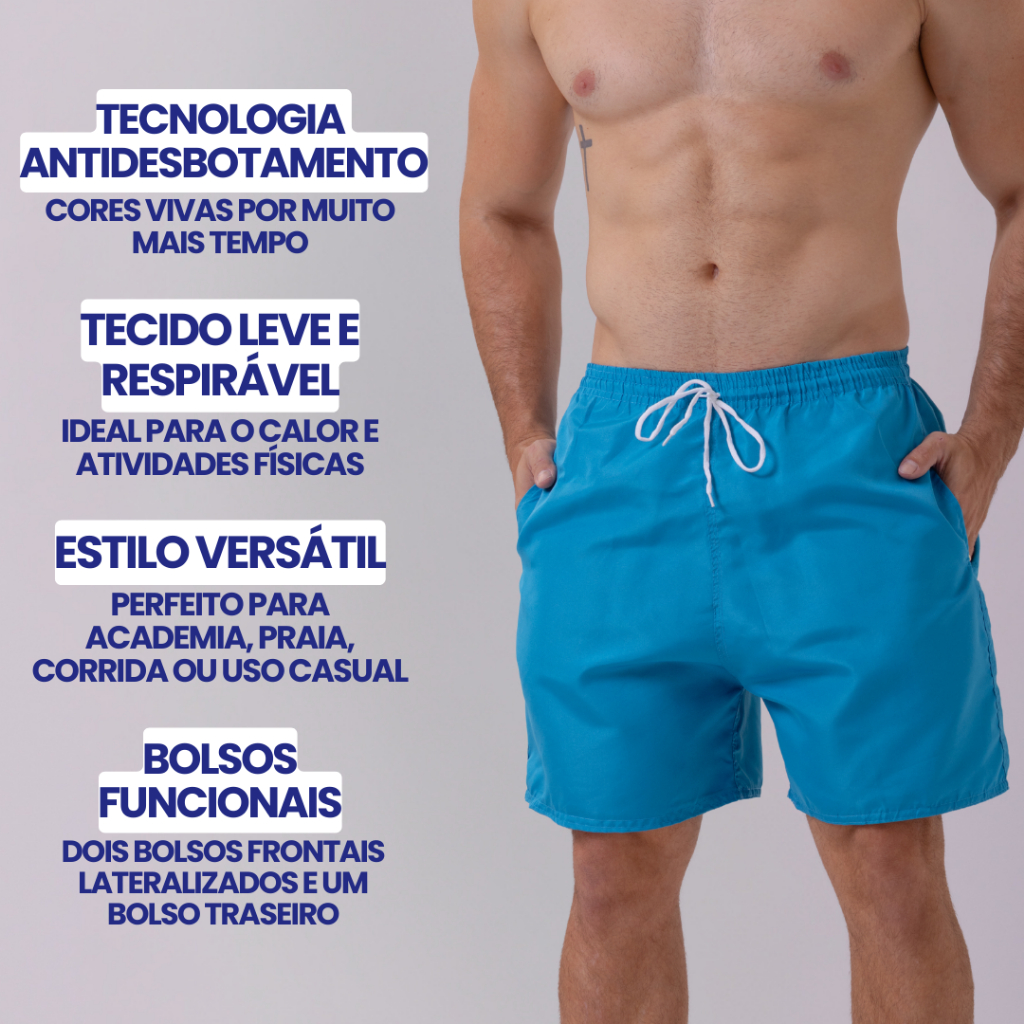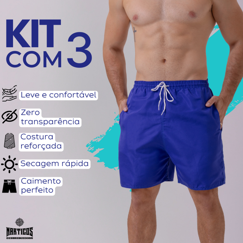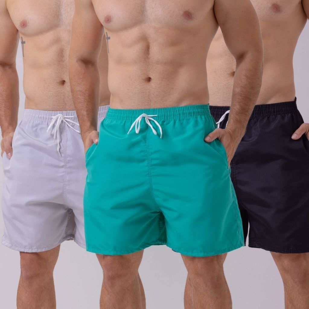 Kit 3 Shorts Praia Masculino Bermuda Tactel Mauricinho Treino Academia Corrida Com Bolso Calção