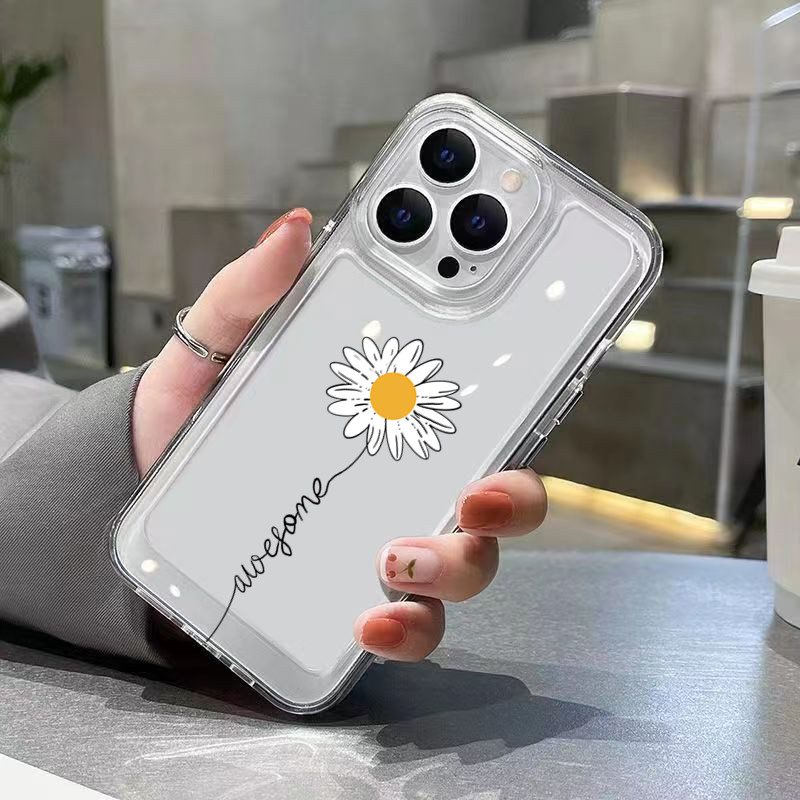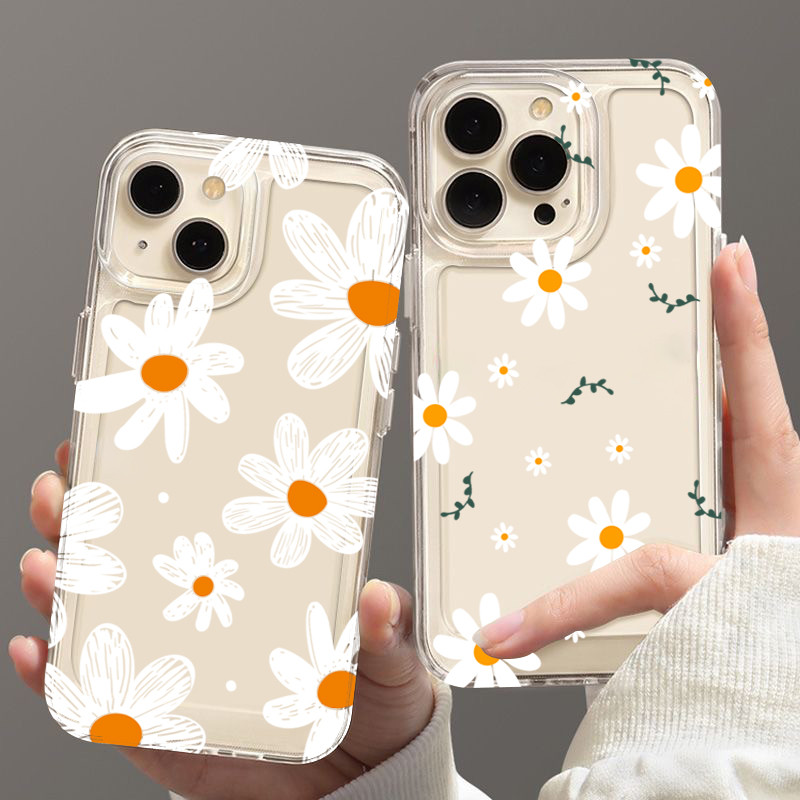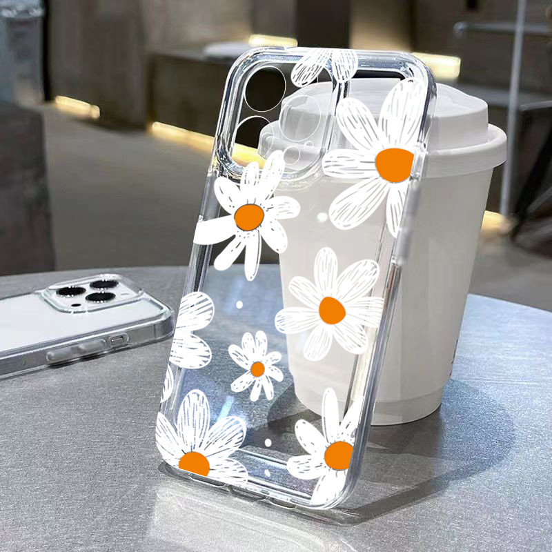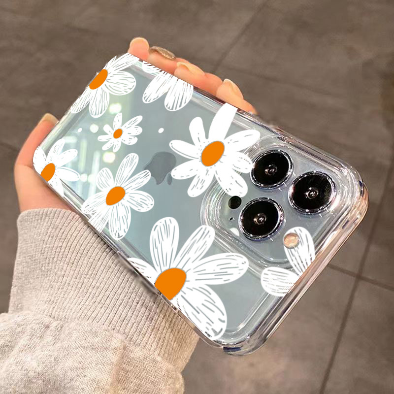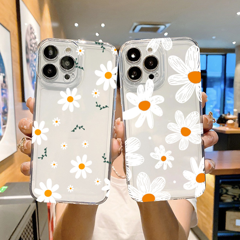 Bonito Margarida Floral Caso De Telefone Para iPhone 11 13 15 17 Pro 12 14 16 Max 7 8 Plus SE2 XR X XS Claro Impresso Ca