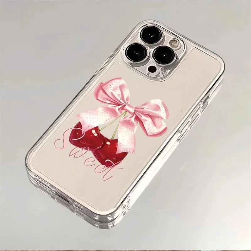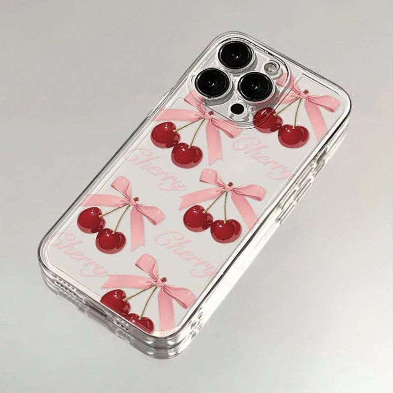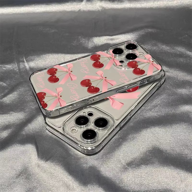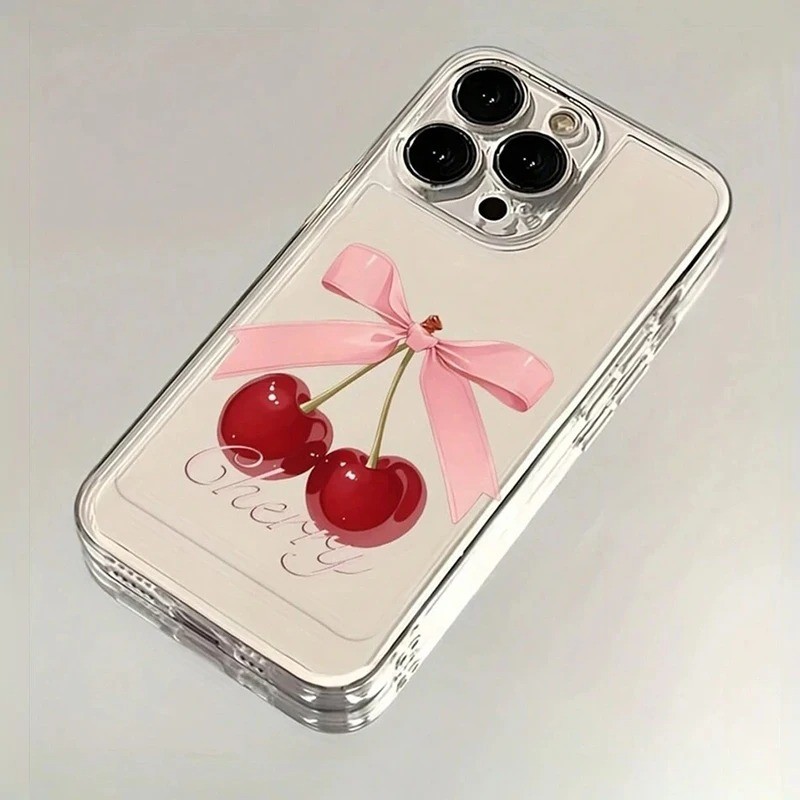 Cereja Impresso Caso De Telefone Para iPhone 16 14 15 13 11 12 Pro Max 16E X XS XR 7 8 Plus SE 2020 Claro Capa Macia