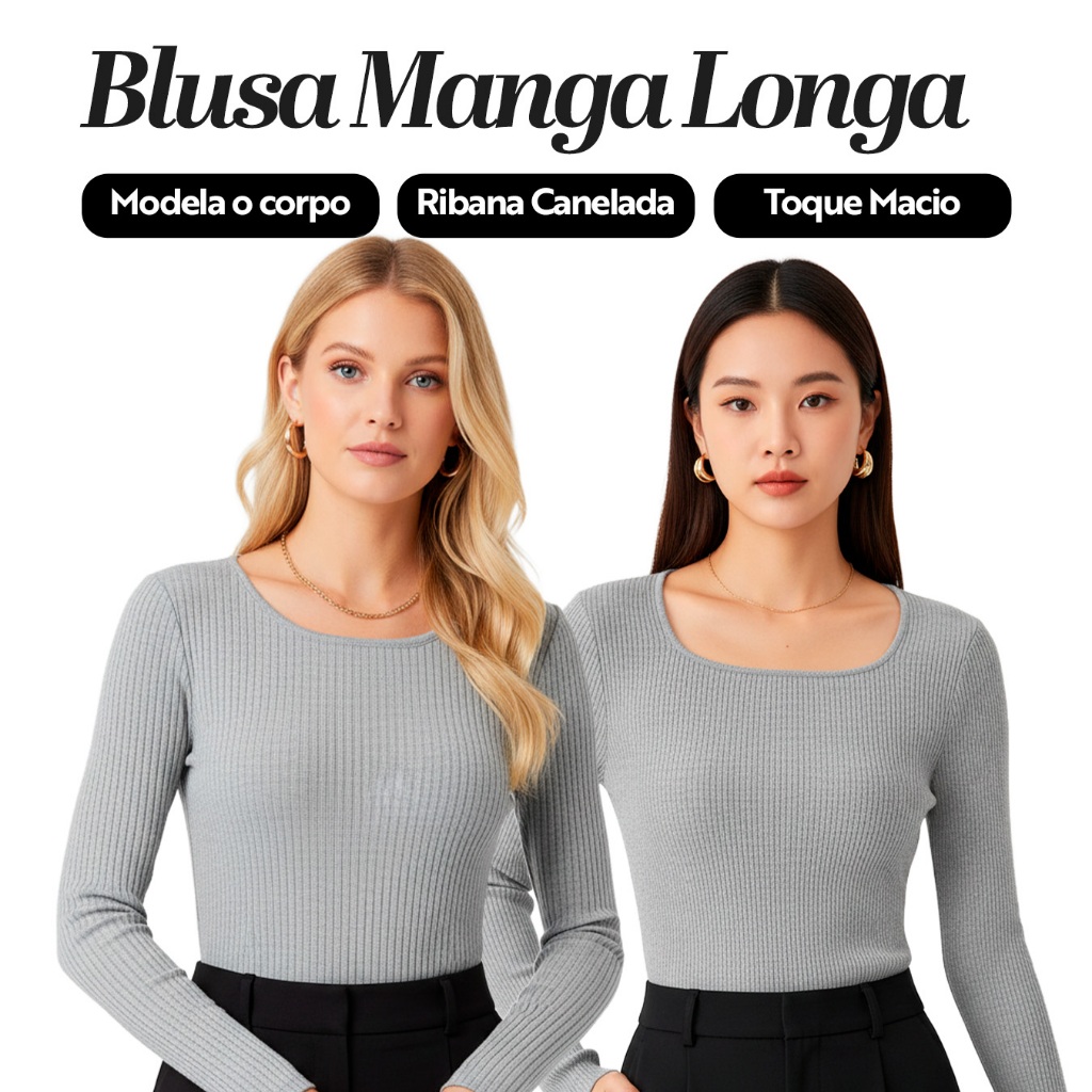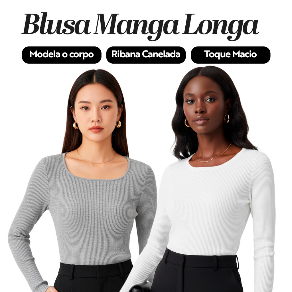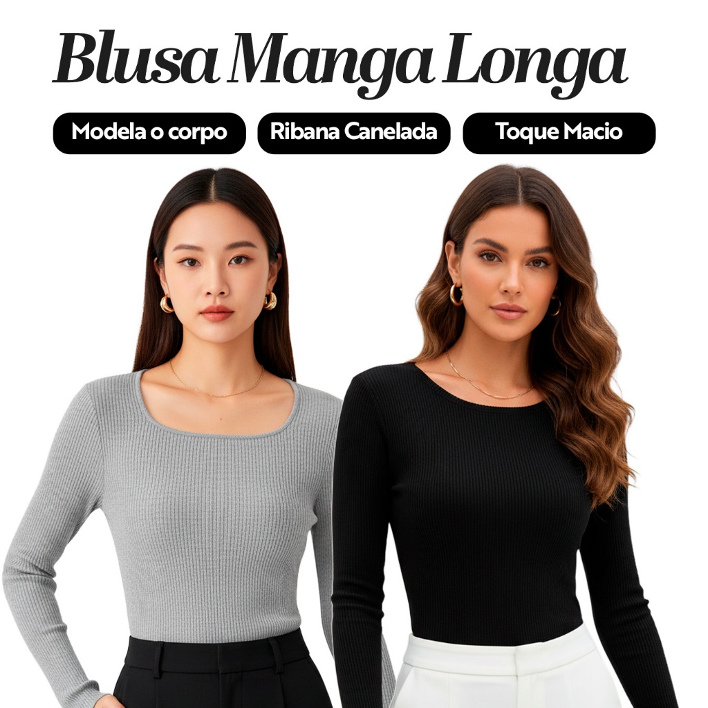 Kit 2 Blusas Manga Longa de Ribana Moda Casual Básica com Elegância e Conforto para Mulheres, Perfeitas Dia a Dia