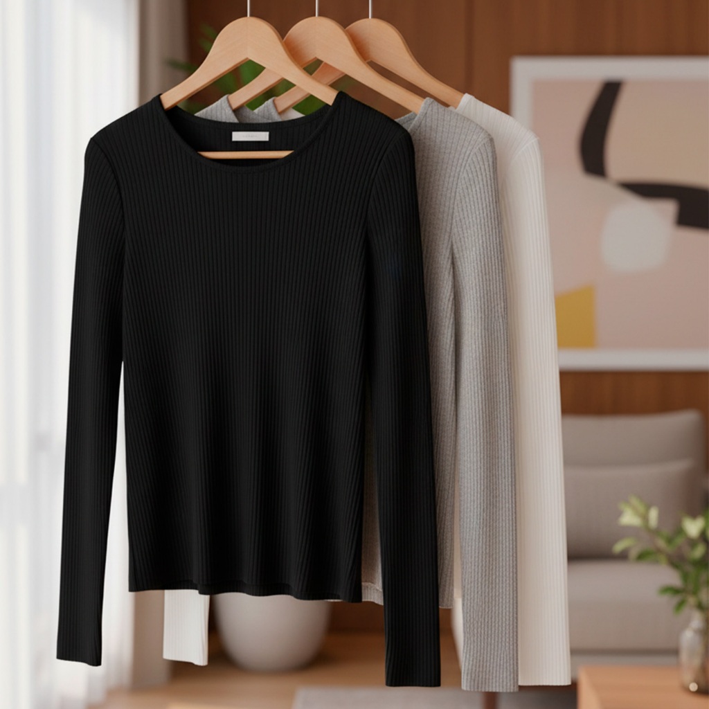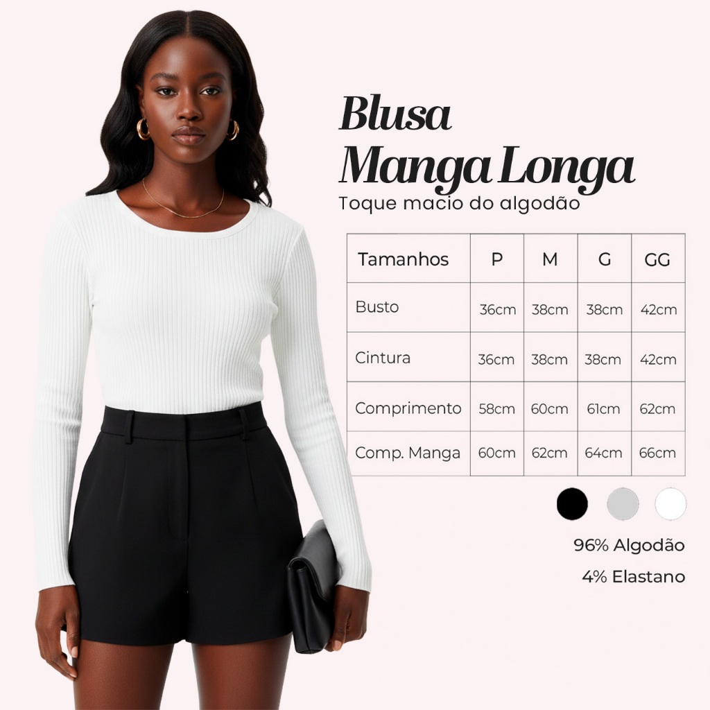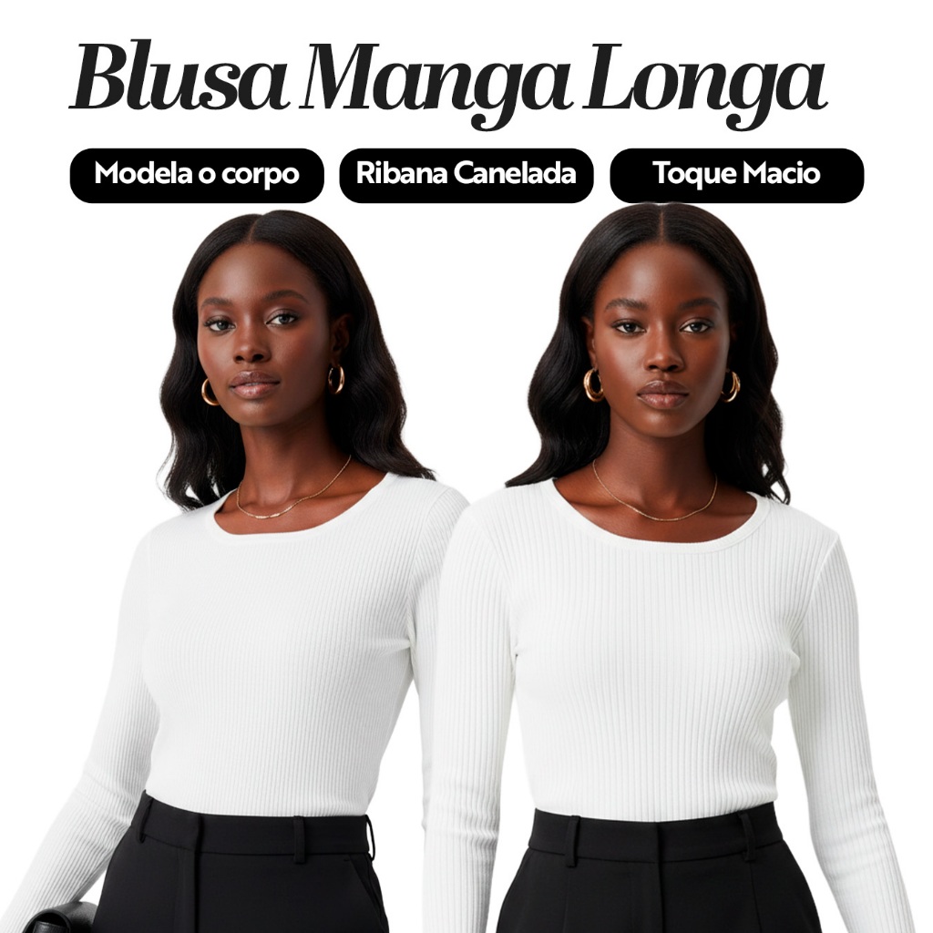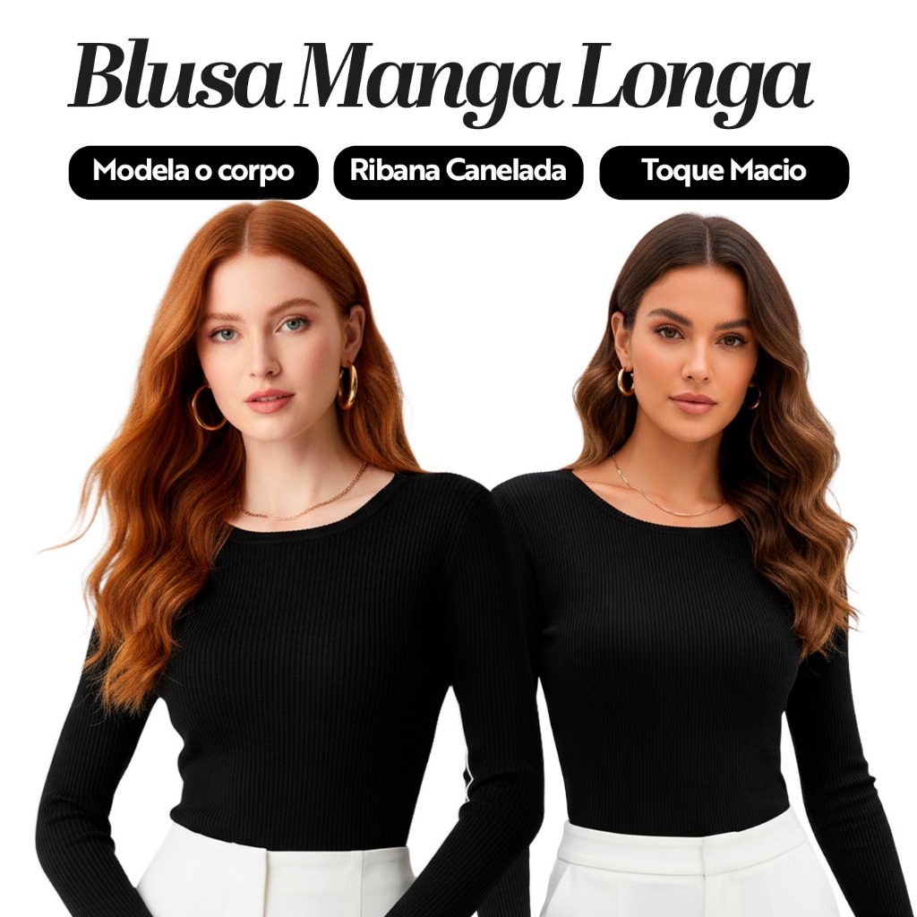 Kit 2 Blusas Manga Longa de Ribana Moda Casual Básica com Elegância e Conforto para Mulheres, Perfeitas Dia a Dia