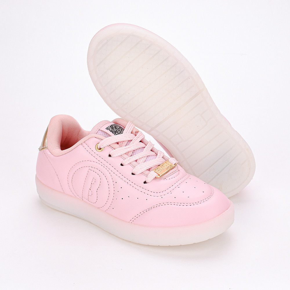 Tênis Infantil Menina Kidy Hype Luz Led Canal da Belinha Nude Rosa Confortável Casual Moderno