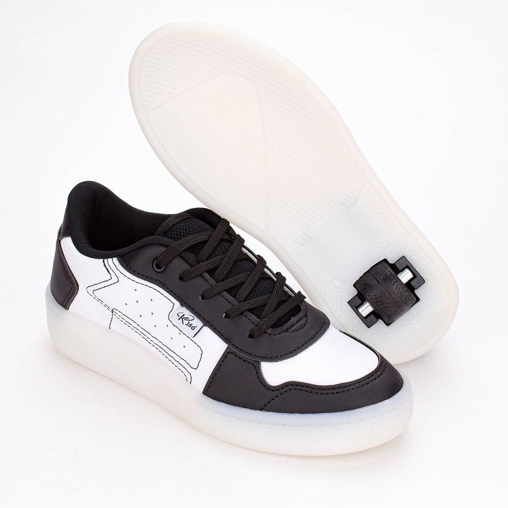 Tênis Infantil Menino Kidy De Rodinha Com Luzes Led Preto Branco Divertido Estiloso