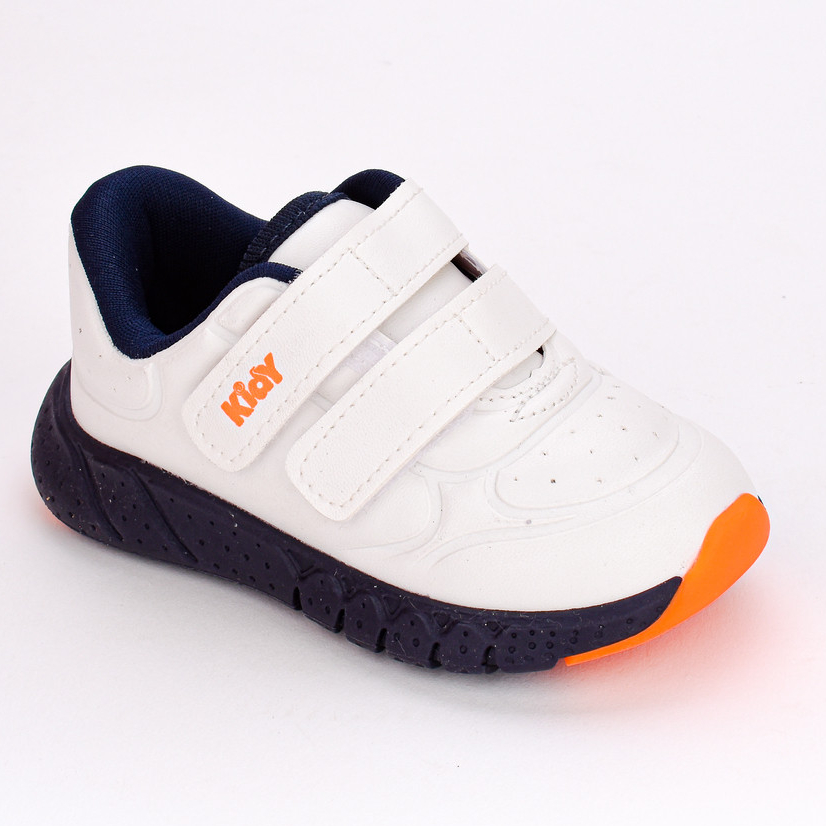 Tênis Infantil Menino Kidy Equilíbrio Baby Fecho Duplo Branco Azul Calce Fácil Antiderrapante
