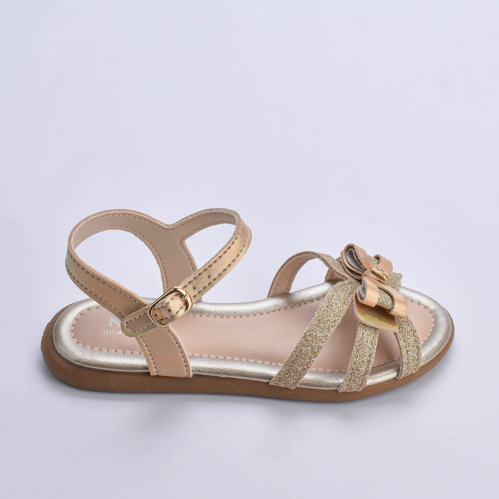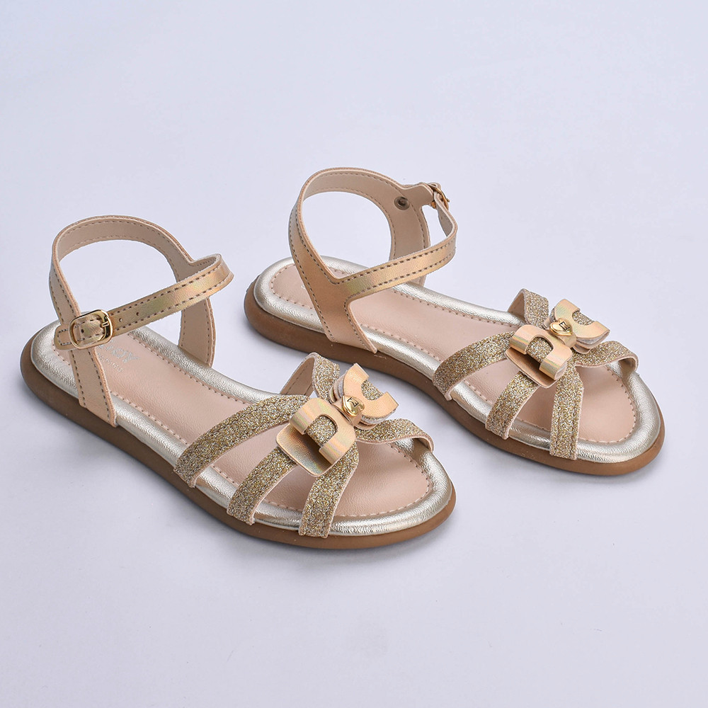Sandália Infantil Menina Kidy Cristal Ouro Laço Brilho Confortável Delicada Antiderrpante