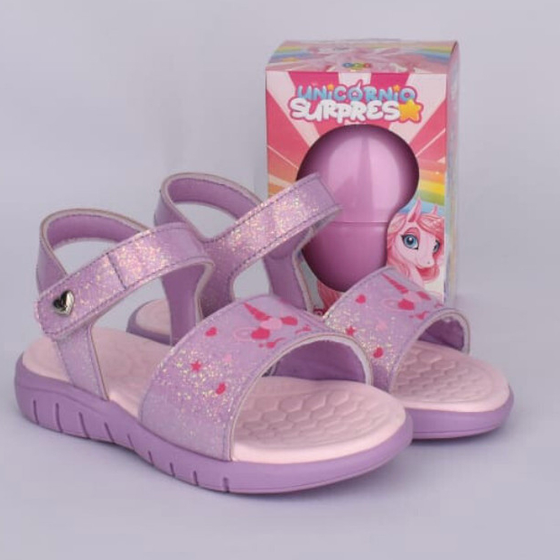 Sandália Papete Infantil Meninas Kidy Toys Unicório Lilás Glitter Brilho Ovo Surpresa Delicada