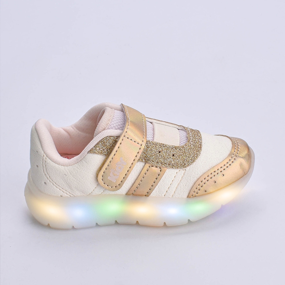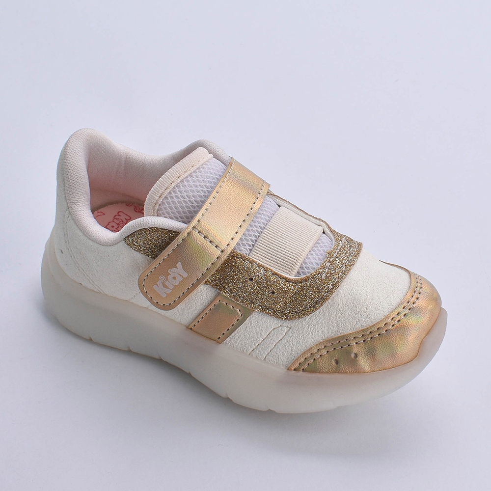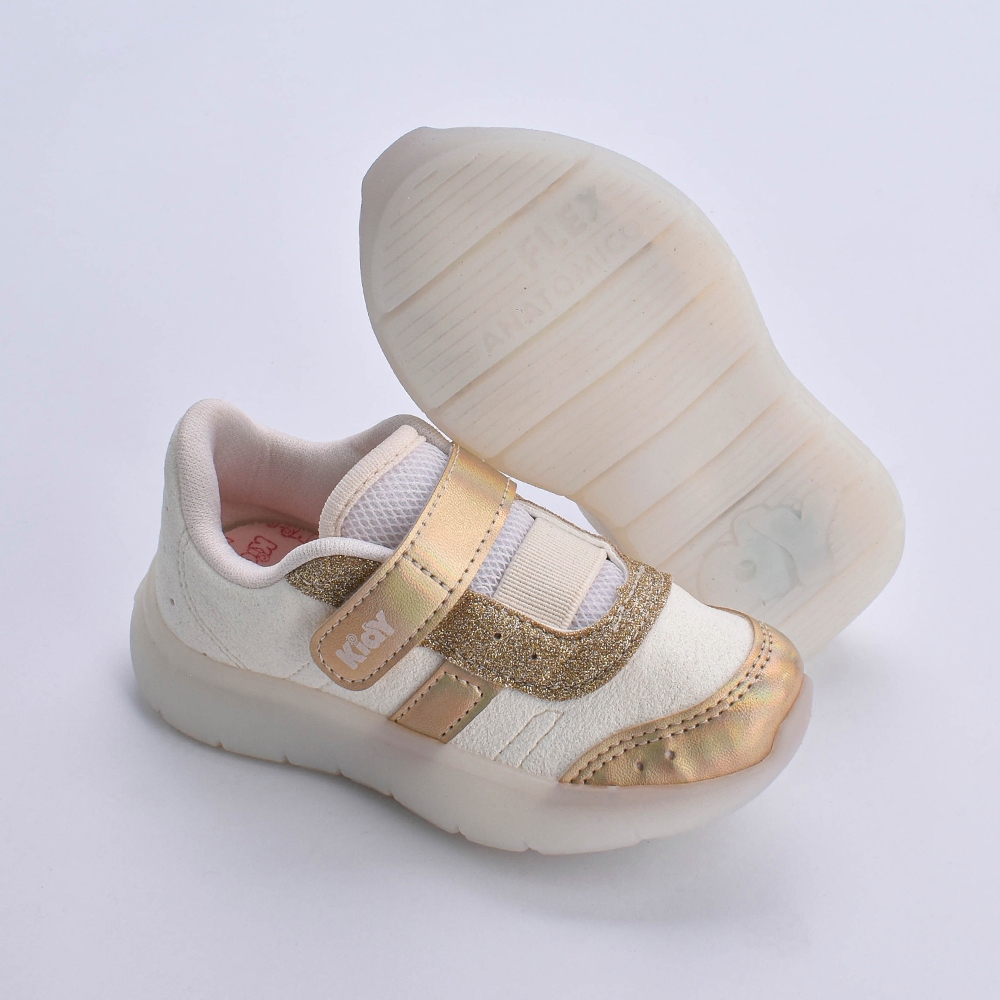 Tênis Infantil Menina Kidy Flex Light Ouro Delicada Moderna Velcro Anatômico Macio Leve