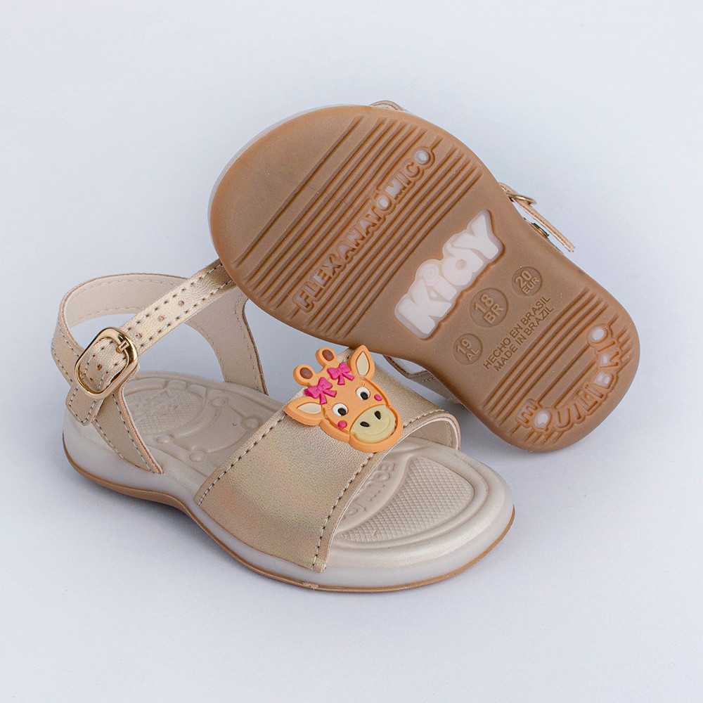 Sandália Papete infantil Menina Kidy Equilíbrio Fivela Enfeite Girafinha Leve Anatômica Confortável