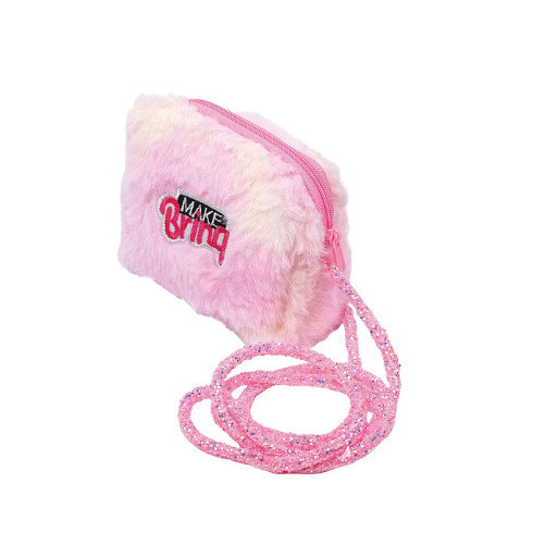 Kit Infantil Bolsa Pelúcia Plush Make Brinq com Gloss Brilhante Menina Presente Fofo Maquiagem