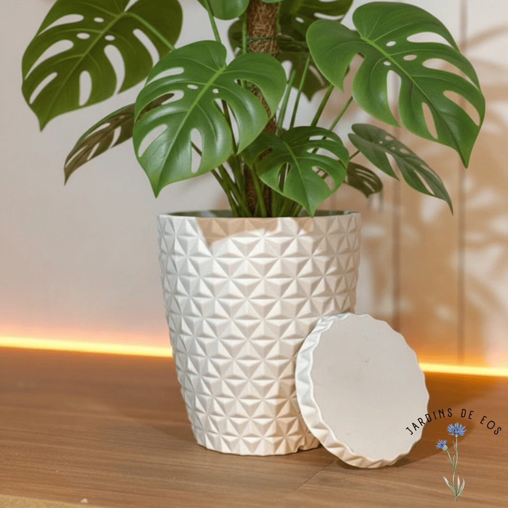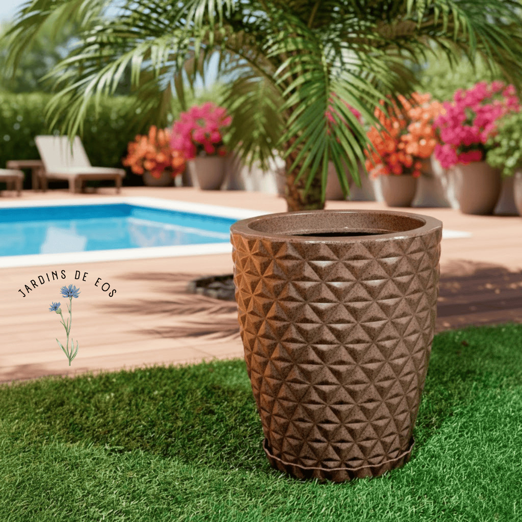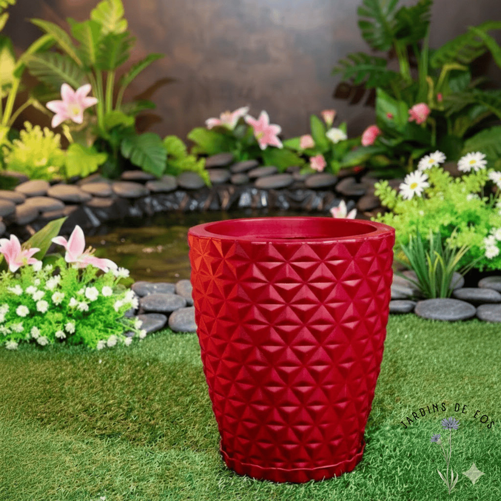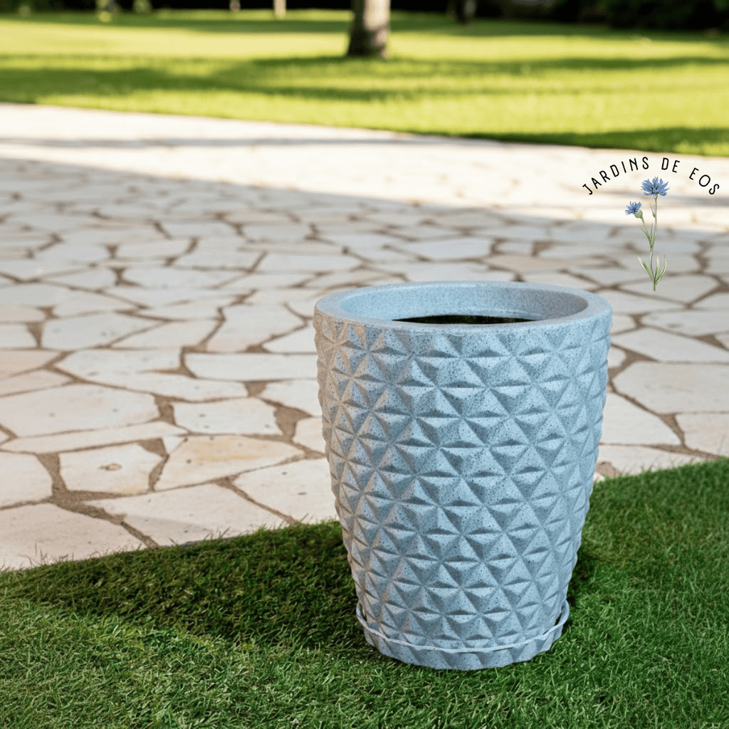Vaso para decoração e plantas - polietileno diamante P ou M COM PRATO COLETOR - Escolha o tamanho