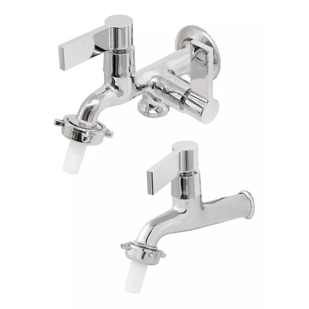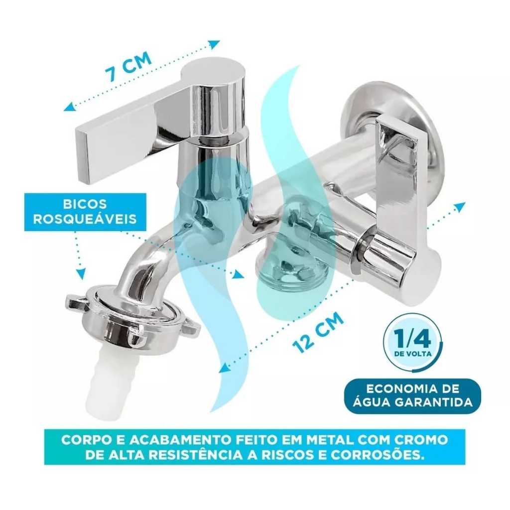 Torneira Para Máquina Lavar Dupla Saída Metal + Torneira Tanque ou Jardim Metal