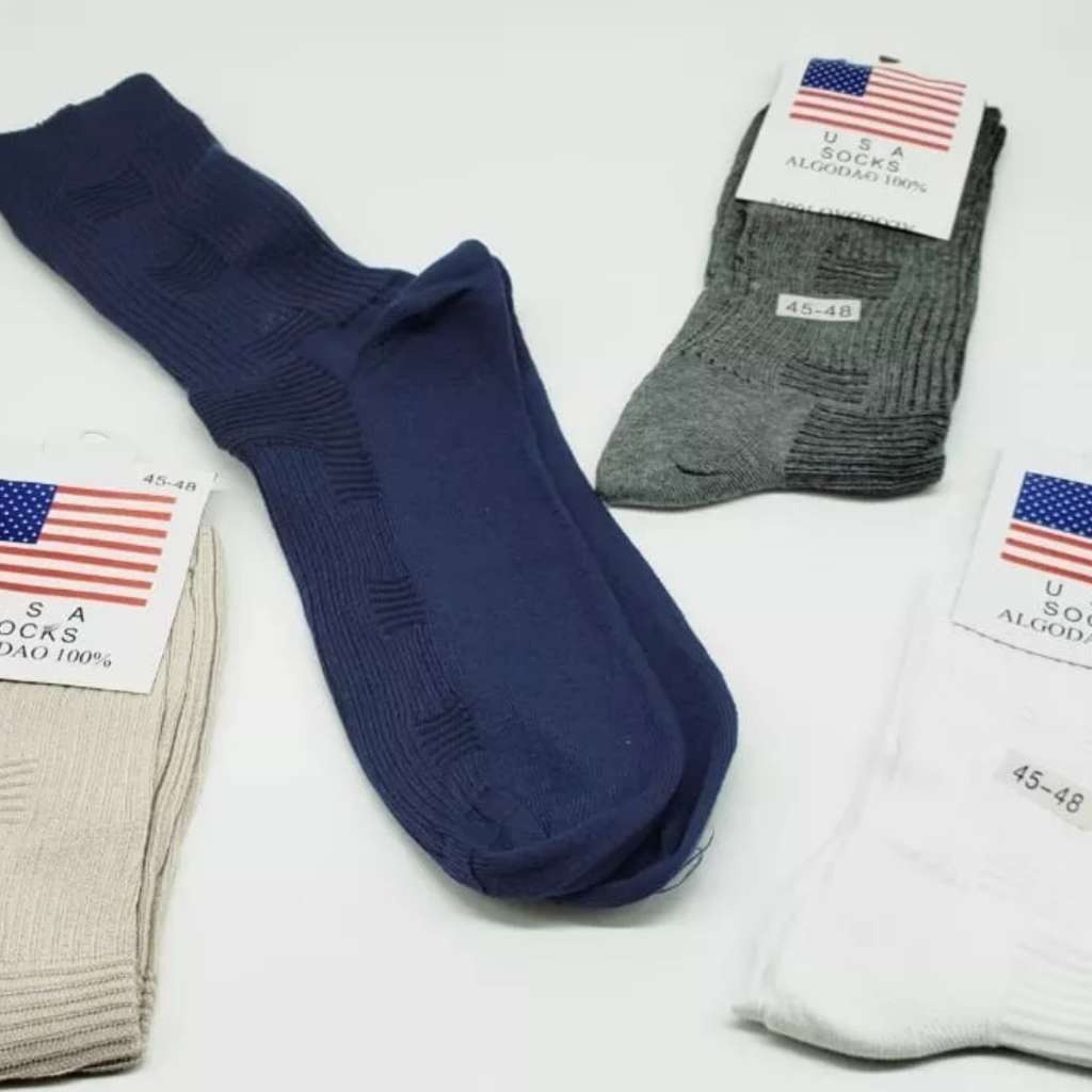Kit 12 Pares de Meias Longas Tamanho 45 ao 48 Algodão Cores Lisas Conforto Masculinas