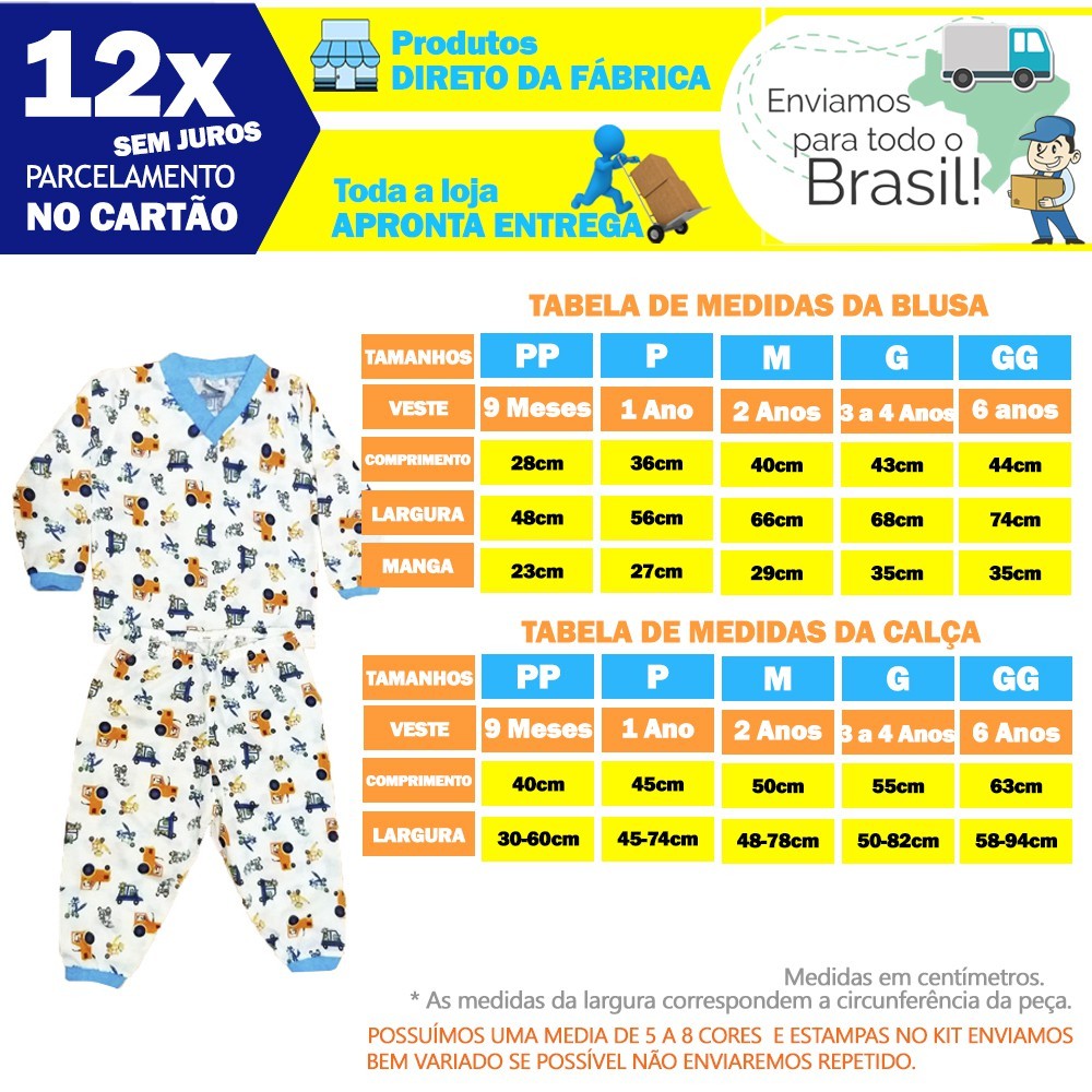 Kit 2 Pijama Infantil Roupa de Dormi Estampado 100% Algodão