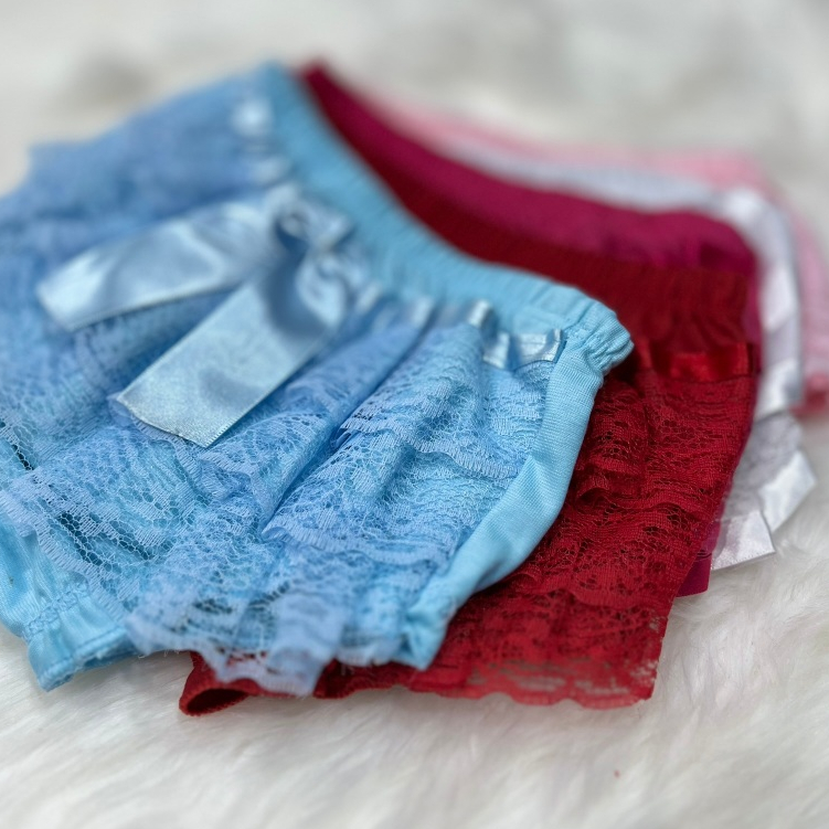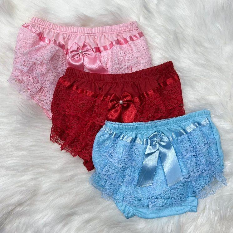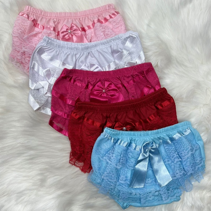 Kit 10 Calcinha Bebê Rendinha Infantil Lacinho Cetim Babadinho Lisa