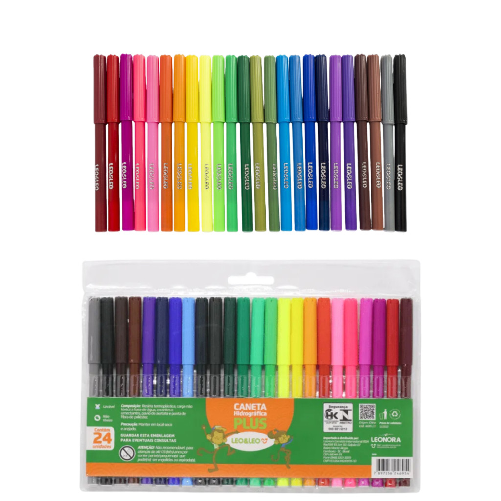Kit 3 Packs (72 Unidades) de Caneta Canetinha Hidrográfica Hidrocor Com 24 Cores Leo&Leo
