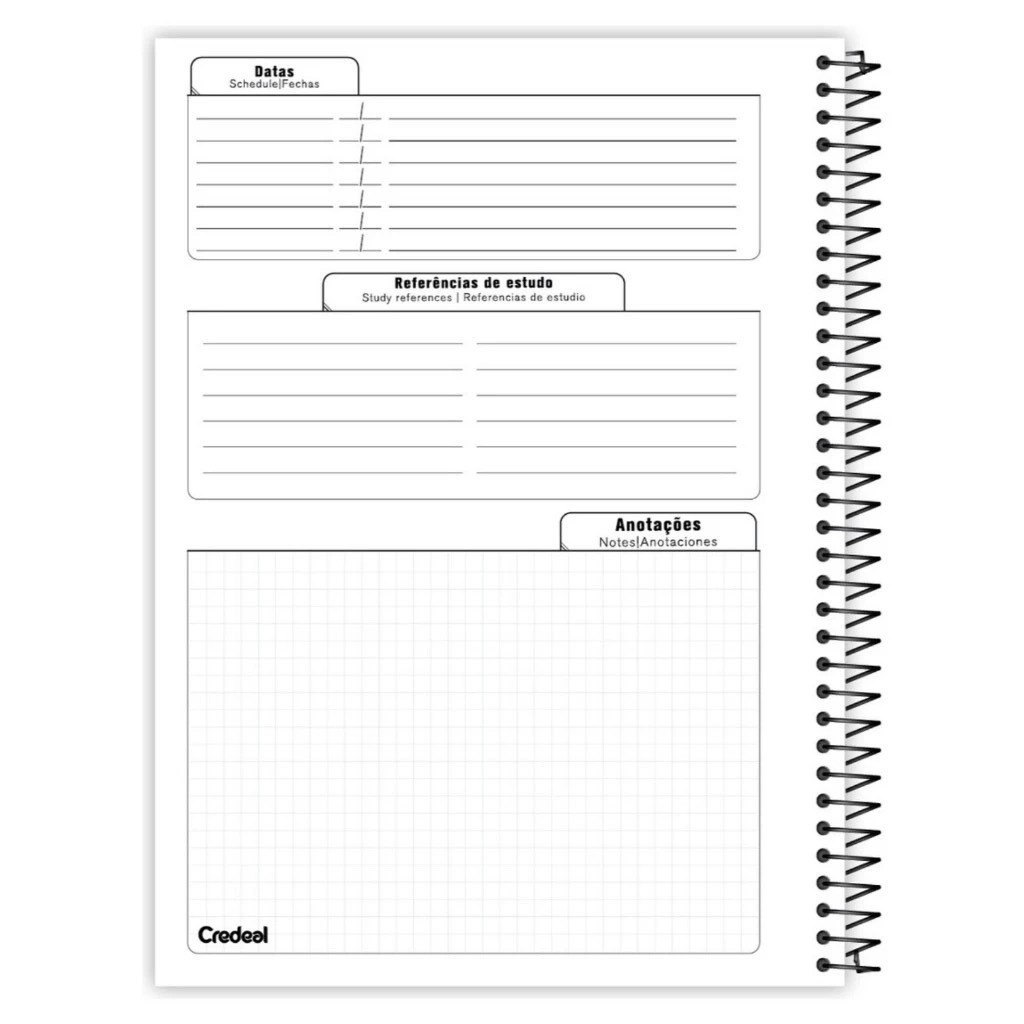 Kit Caderno Universitário 10 Matérias + 5 Canetas Wow Coloridas 0.7mm Caderno Capa Dura Preto Escolar