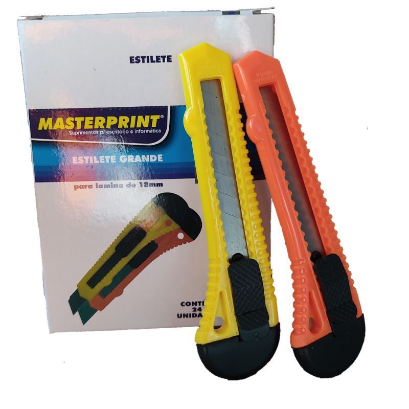 Estilete Grande Plástico Largo Lâmina 18MM Escolar Escritório Masterprint