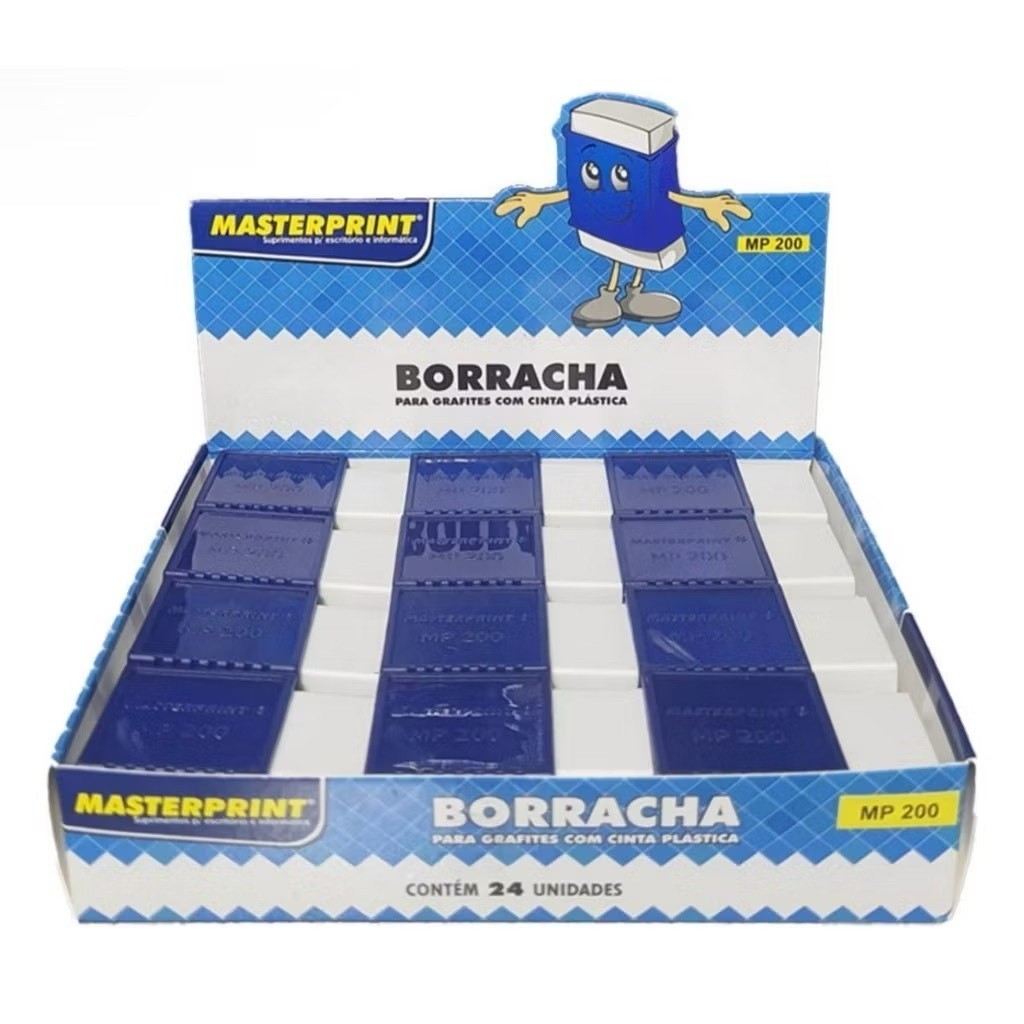 Kit 12 Borracha Branca Com Capa Azul 12 Unidades Escolar Escritório Masterprint