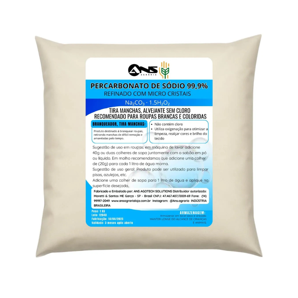 Percarbonato de Sódio 1kg Original Limpeza Remove Manchas Desinfeta e Clareia Roupas Brancas