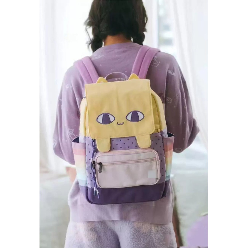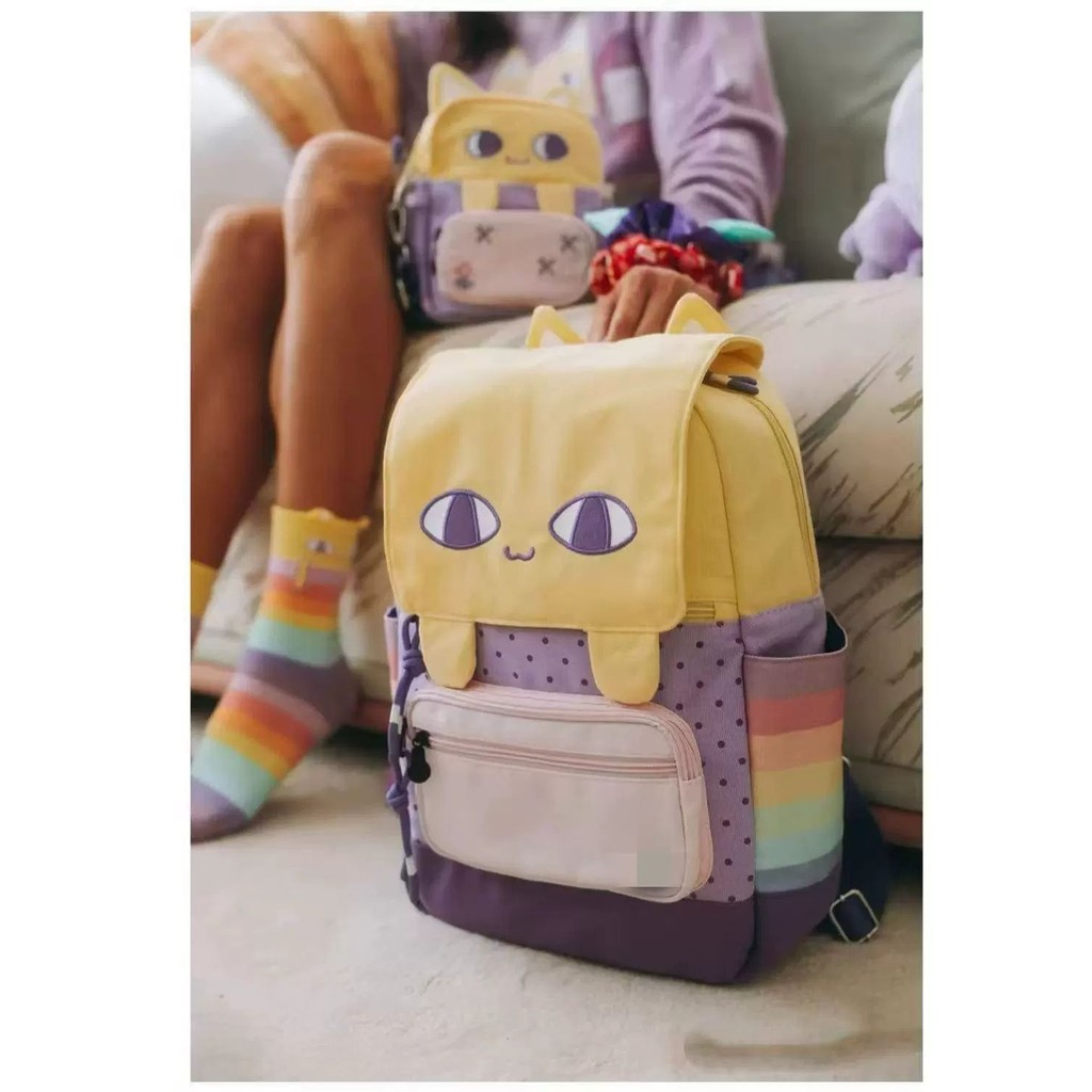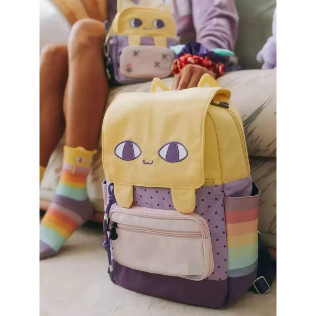 Y2k Atmosfera Pequeno Gato Amarelo Leve Mochila Dos Desenhos Animados Doce E Legal De Lona Feminina Versátil Estilo Desl