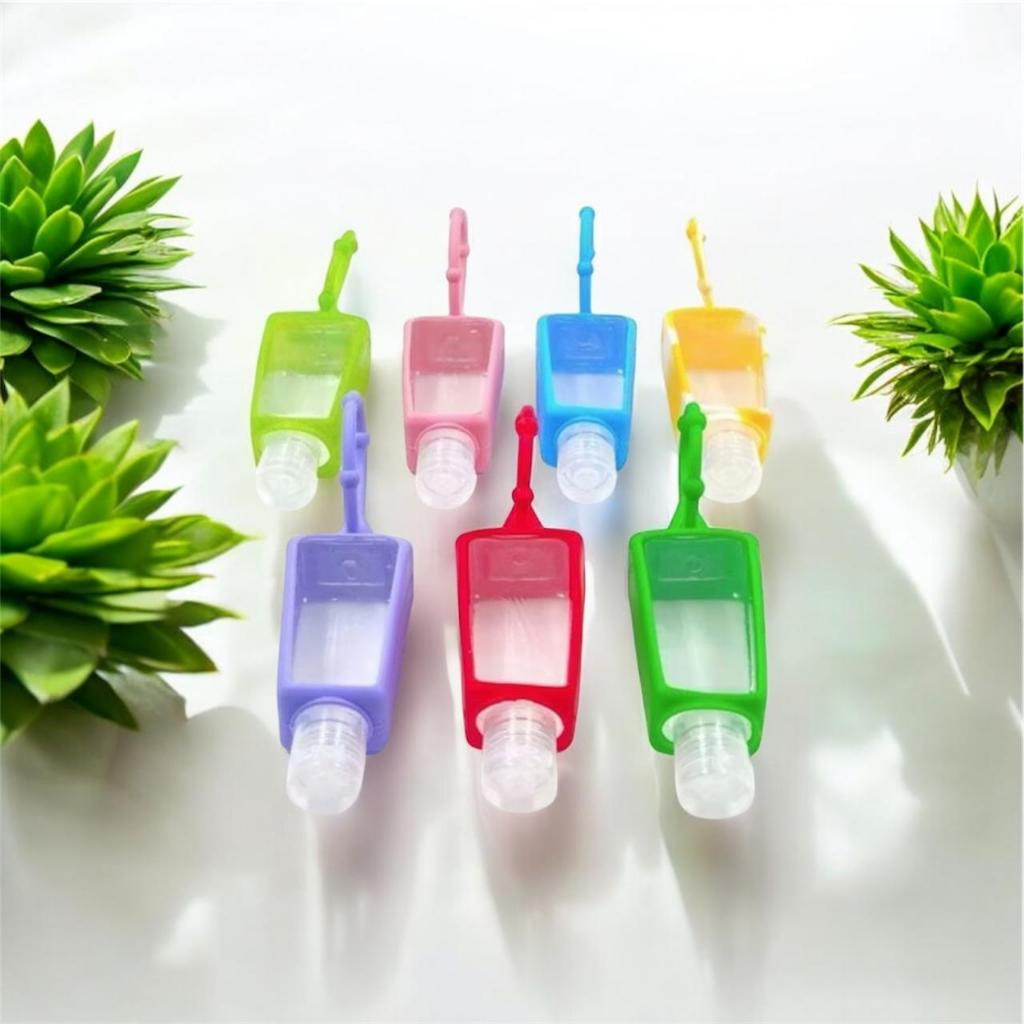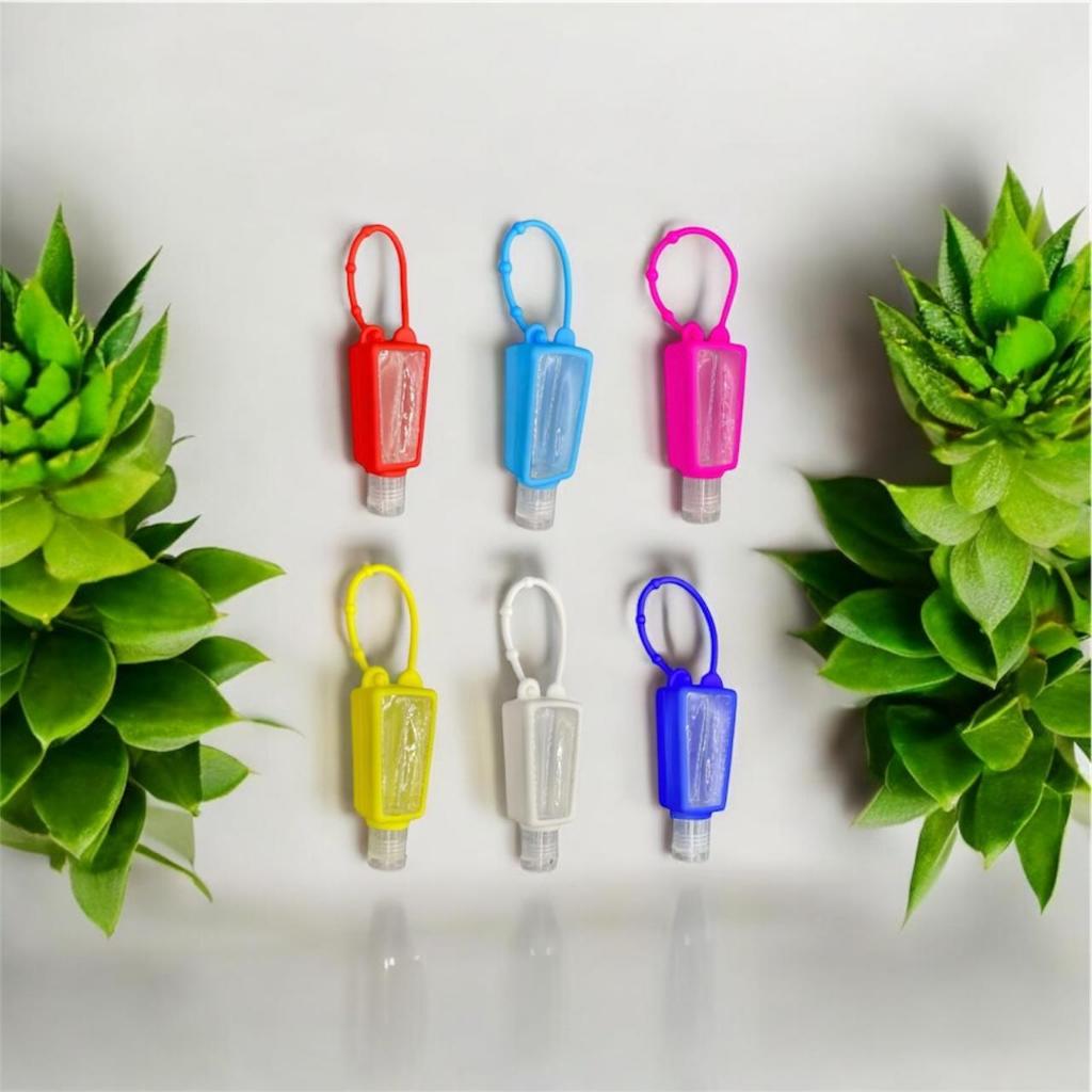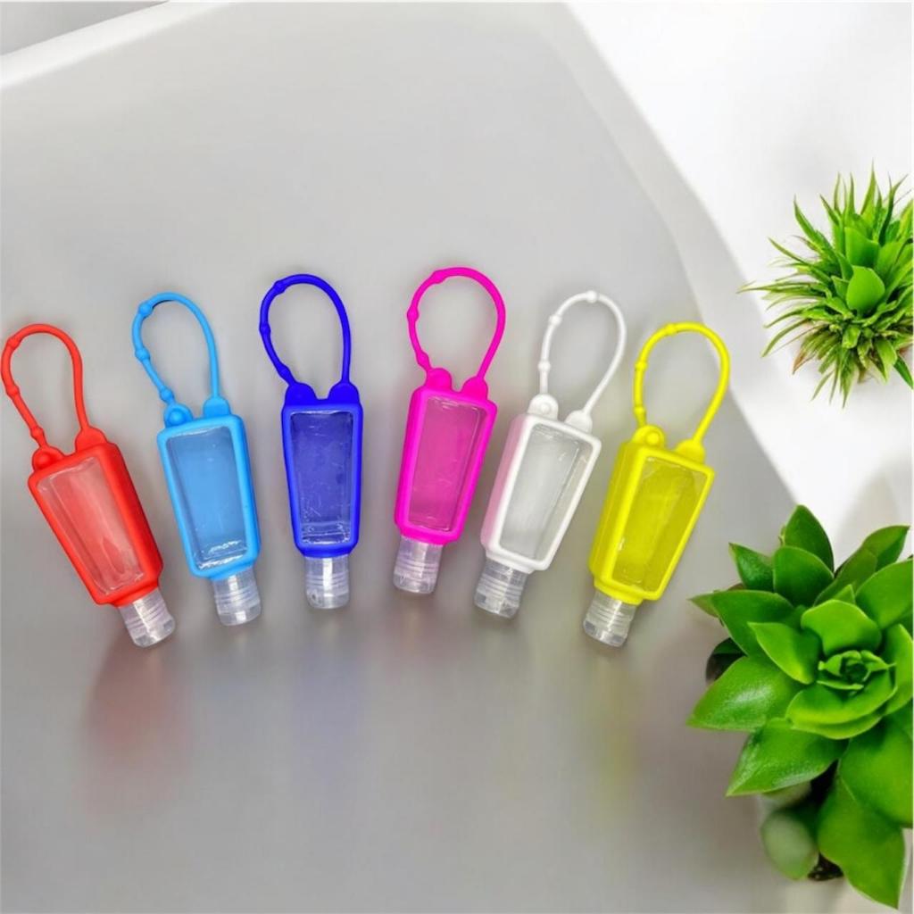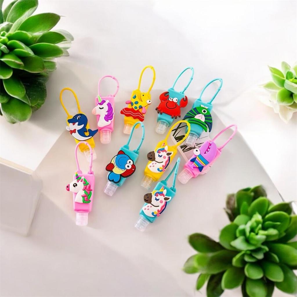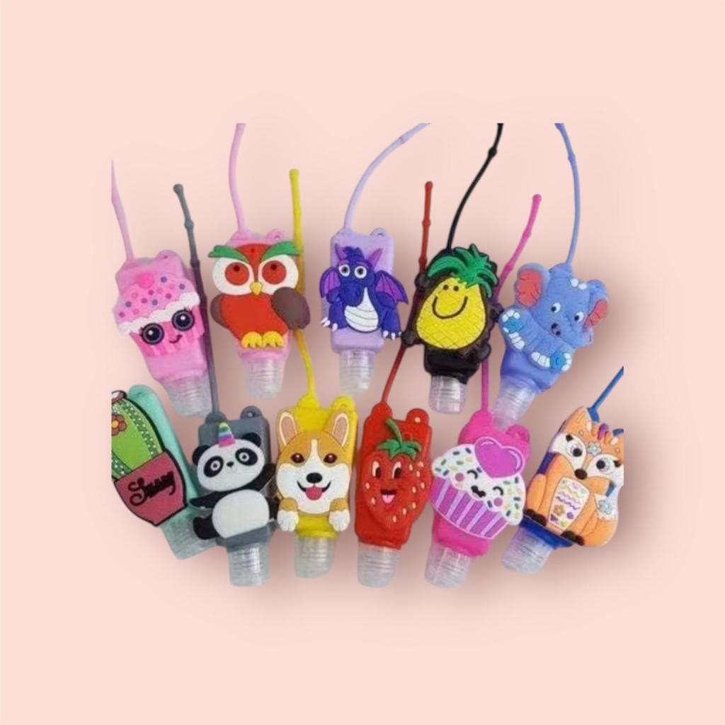 Kit 12 Unidades Frasco Porta Alcool Gel Chaveiro Silicone Infantil Modelos sortidos C/ Desenho Ou Liso Cor Aleatorio