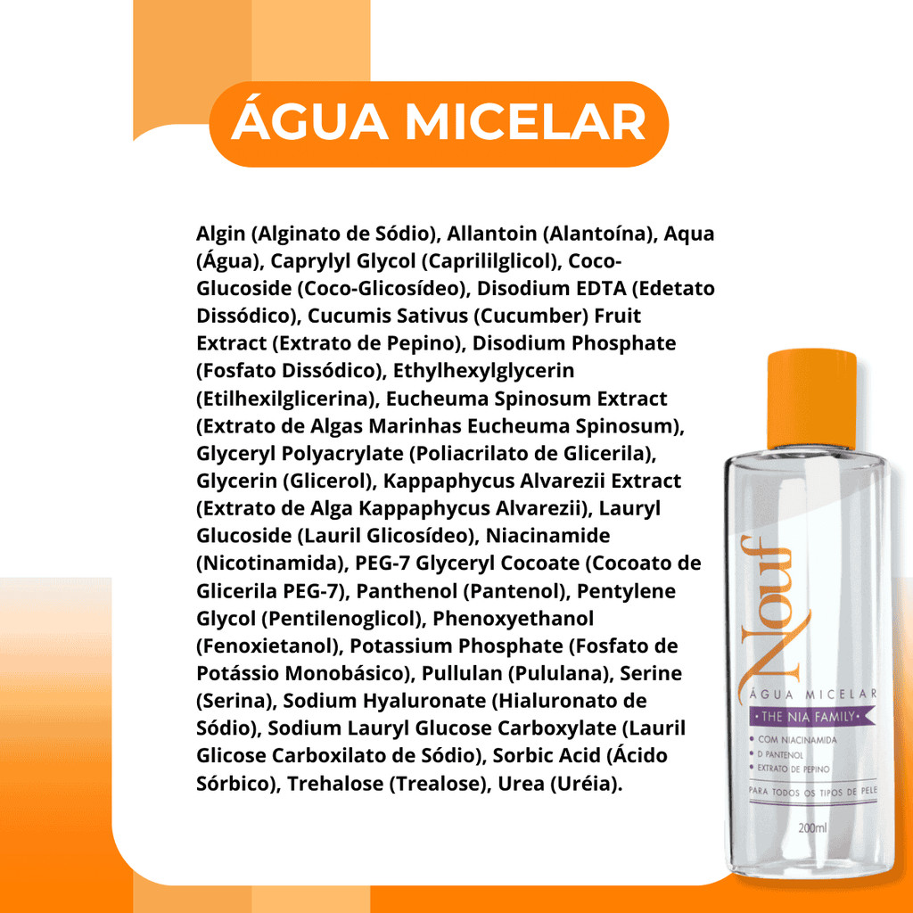 Agua Micelar Nouf, ácido hialurônico - 200ML