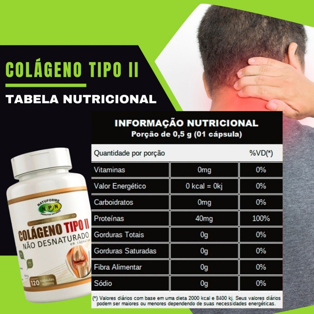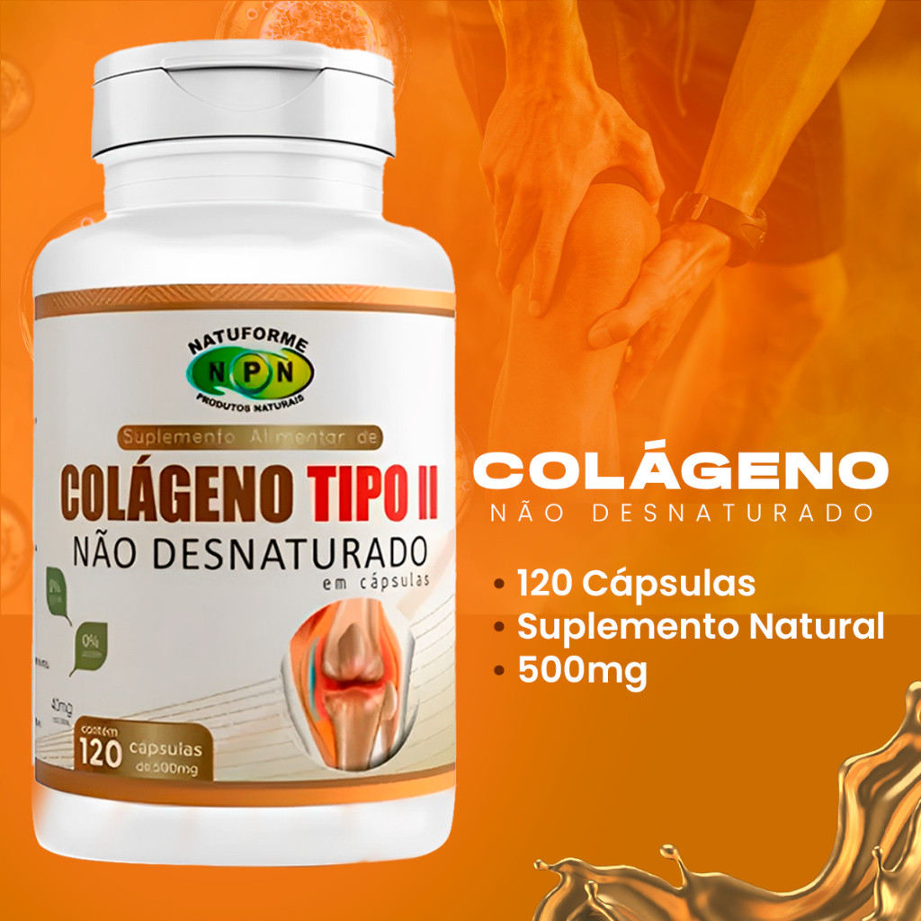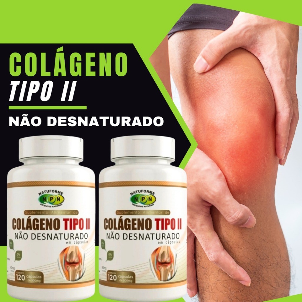 Colágeno Tipo 2 Não Desnaturado Puro 120 Cápsulas para Dores Articulares