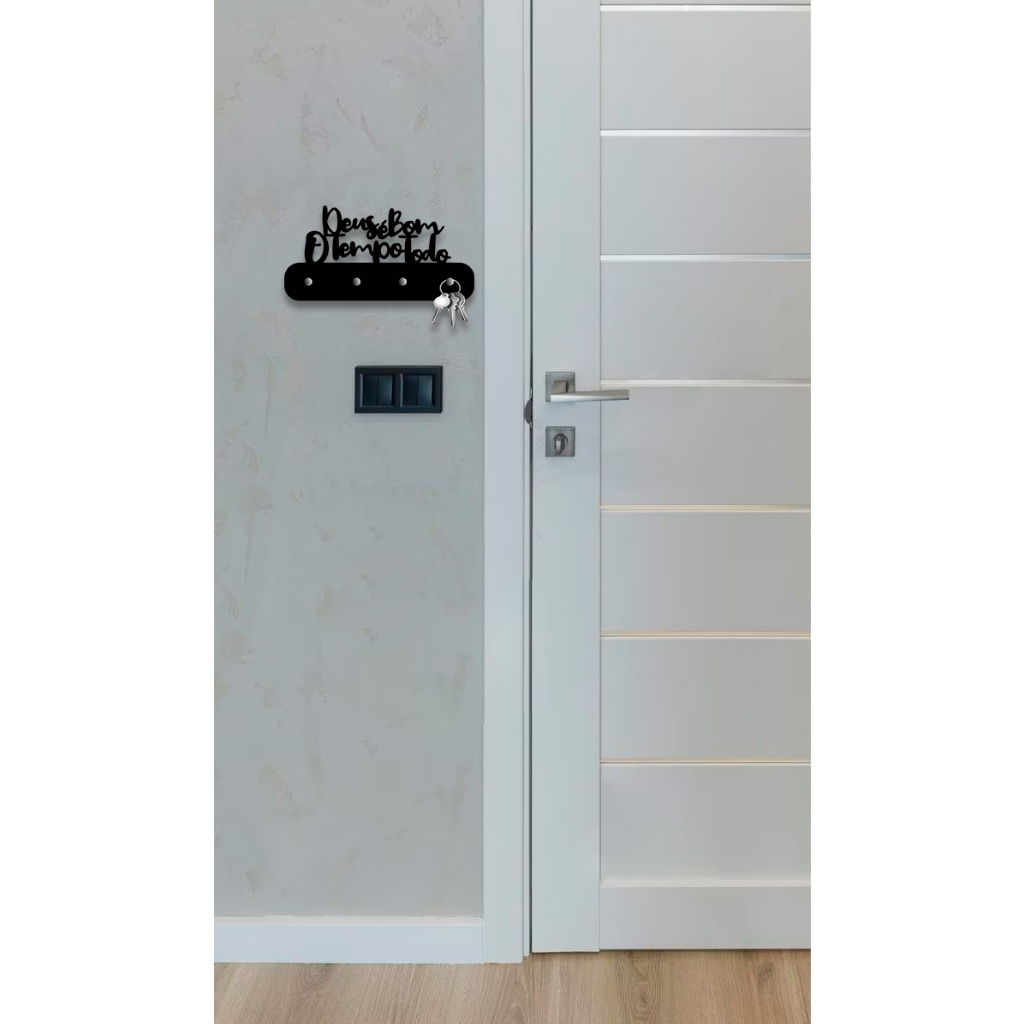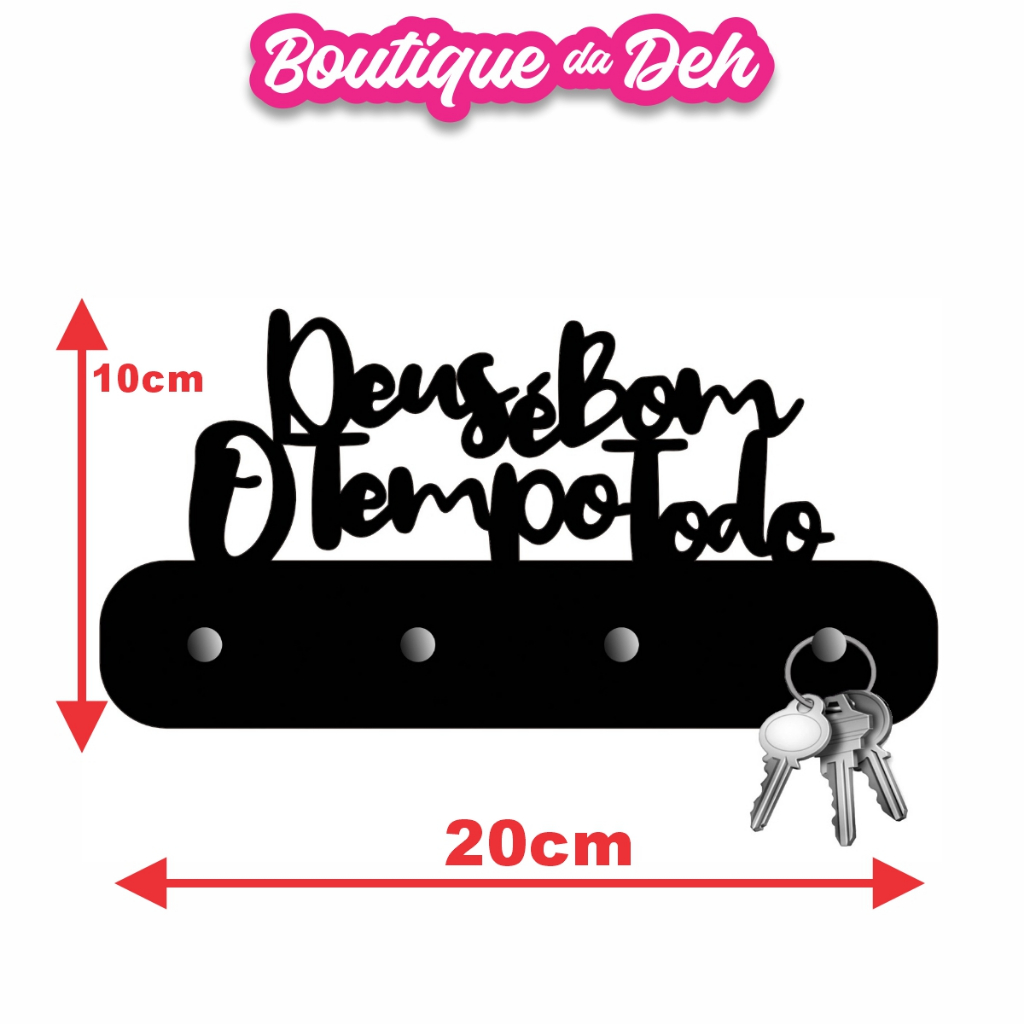 Porta Chaves de Parede Decorativo em MDF 3mm Preto Deus é bom o Tempo Todo Envio Imediato